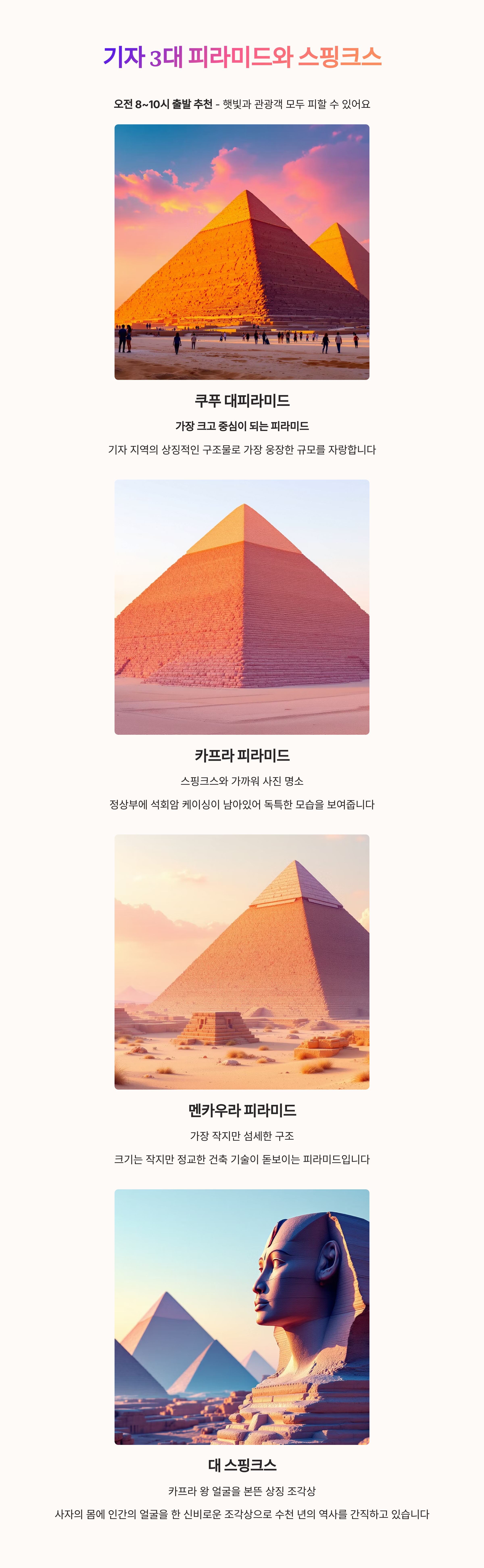 1. 투어 구성 – 기자 3대 피라미드 + 스핑크스까지