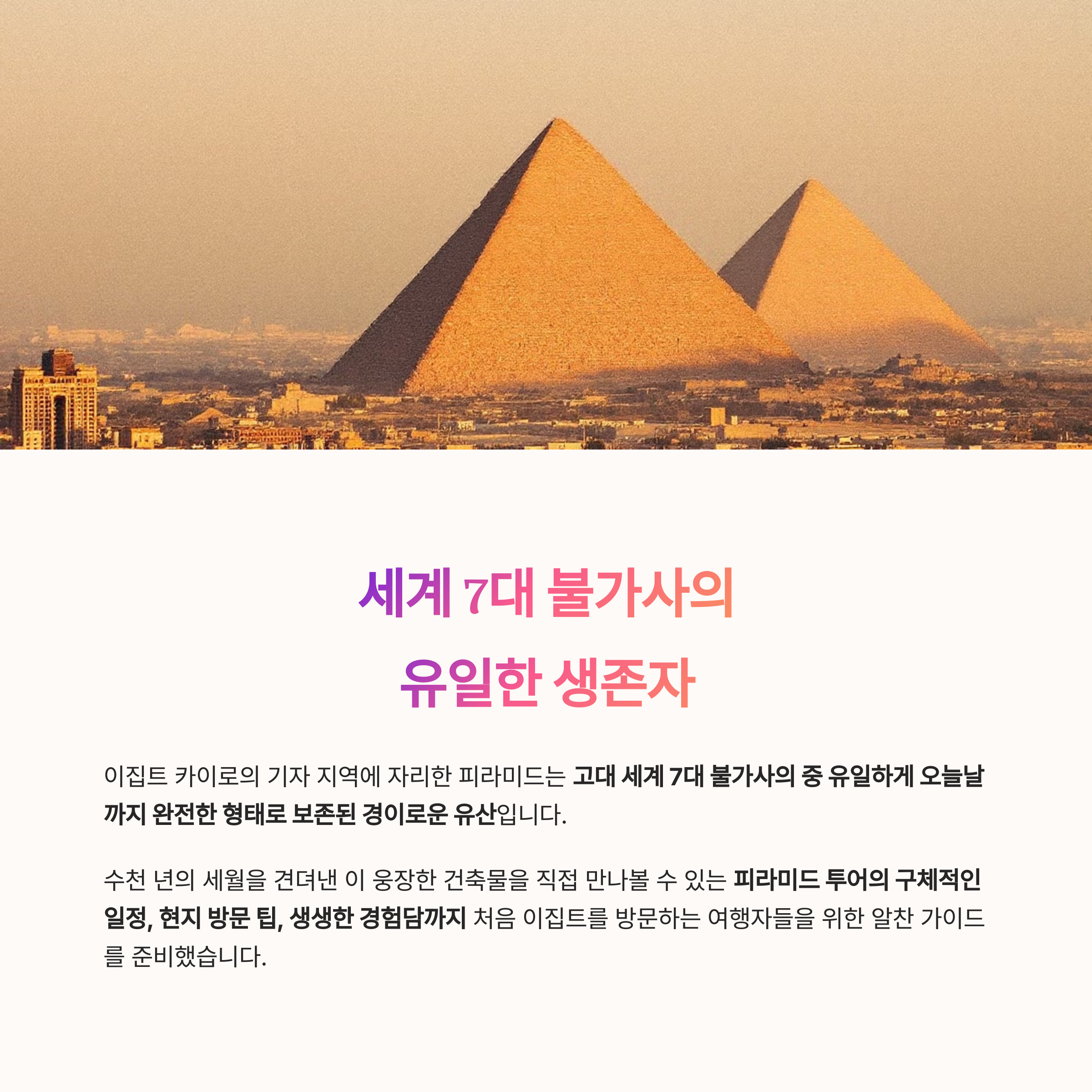 카이로에서 시작되는 피라미드 투어, 그 압도적인 순간을 안내해드릴게요.