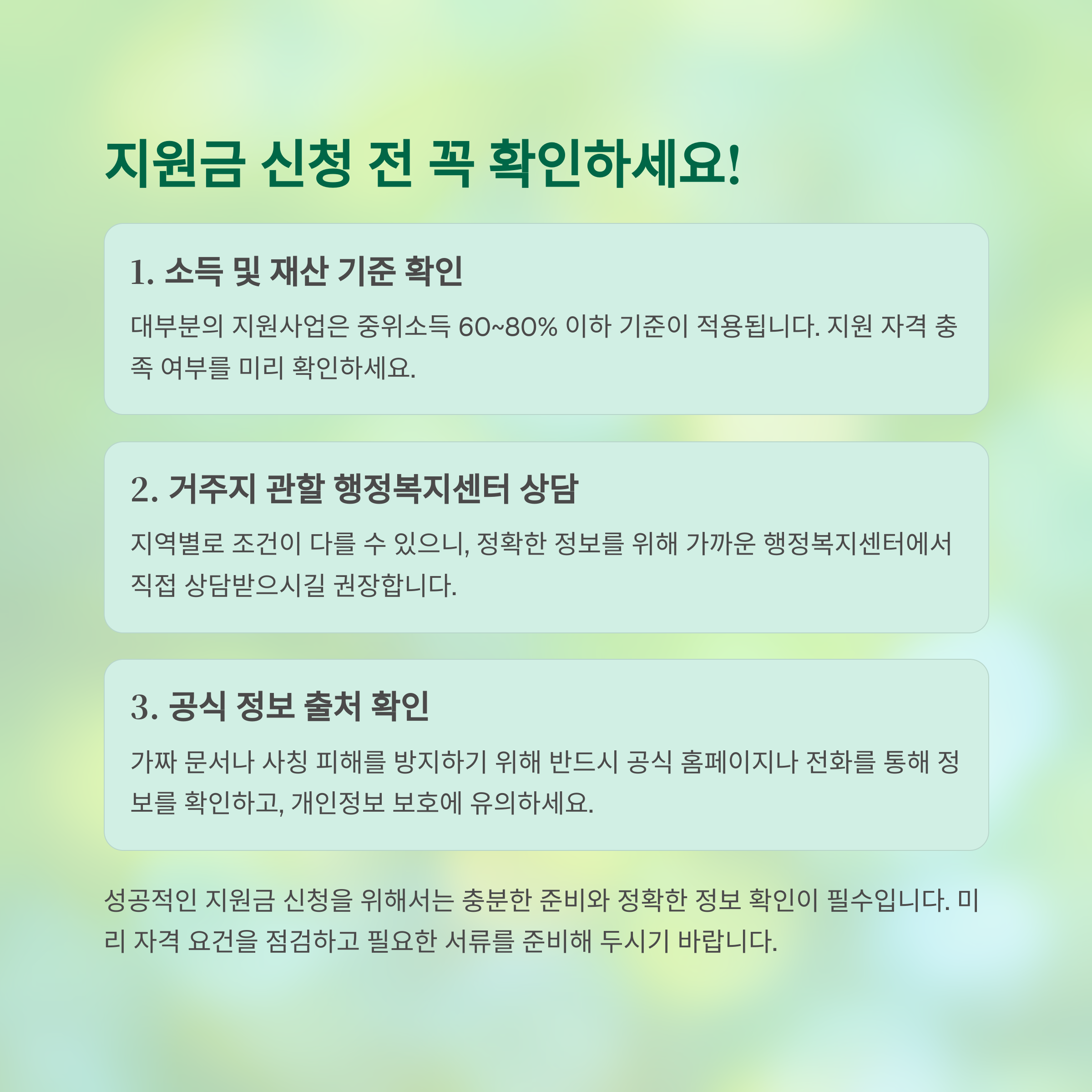- 거주지 관할 행정복지센터 통한 상담 권장