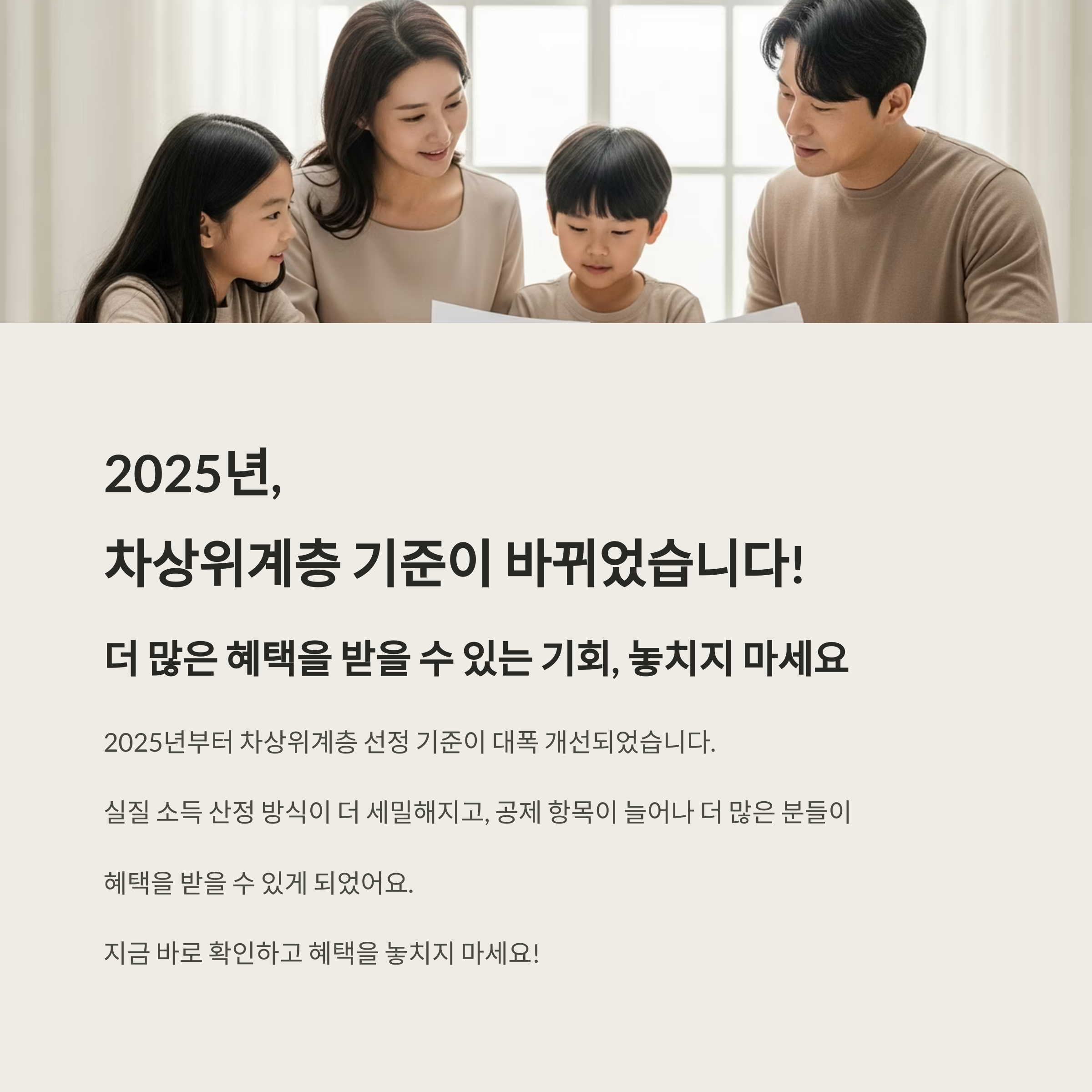 2025년부터 차상위계층 선정 기준이 대폭 변경됐어요.