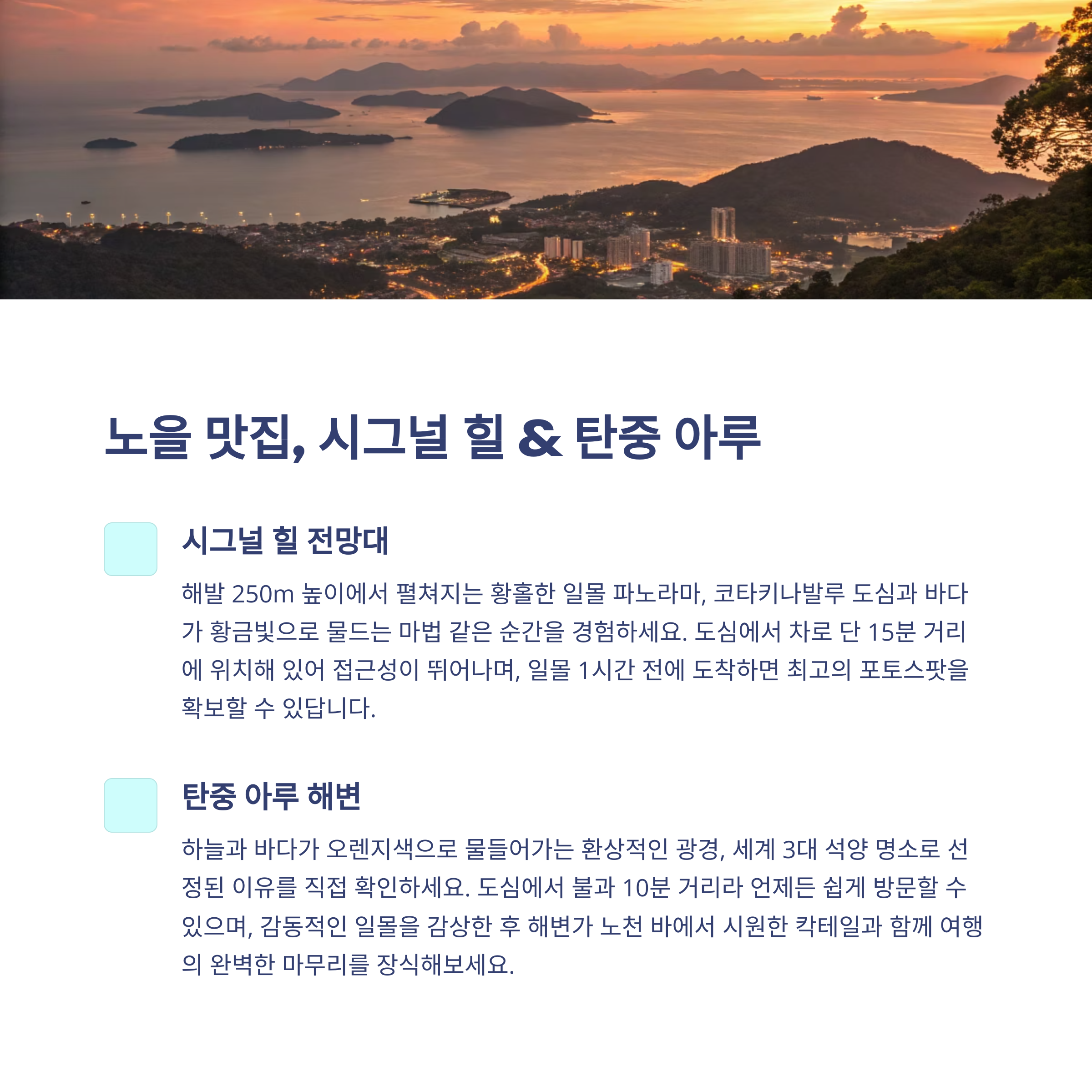 짧은 일정 속 바다, 석양, 로컬 감성을 모두 담은 말레이시아 대표 휴양지