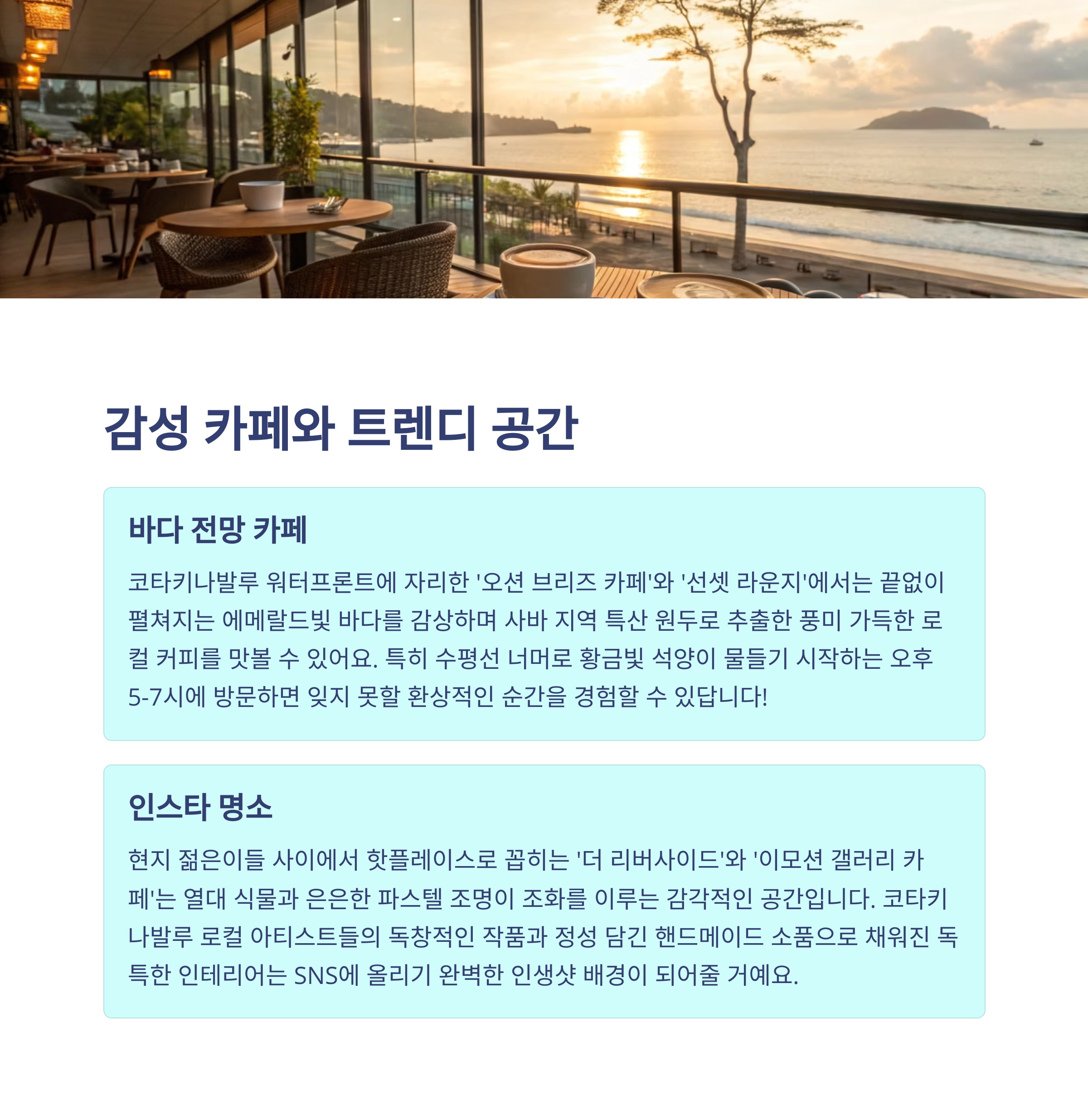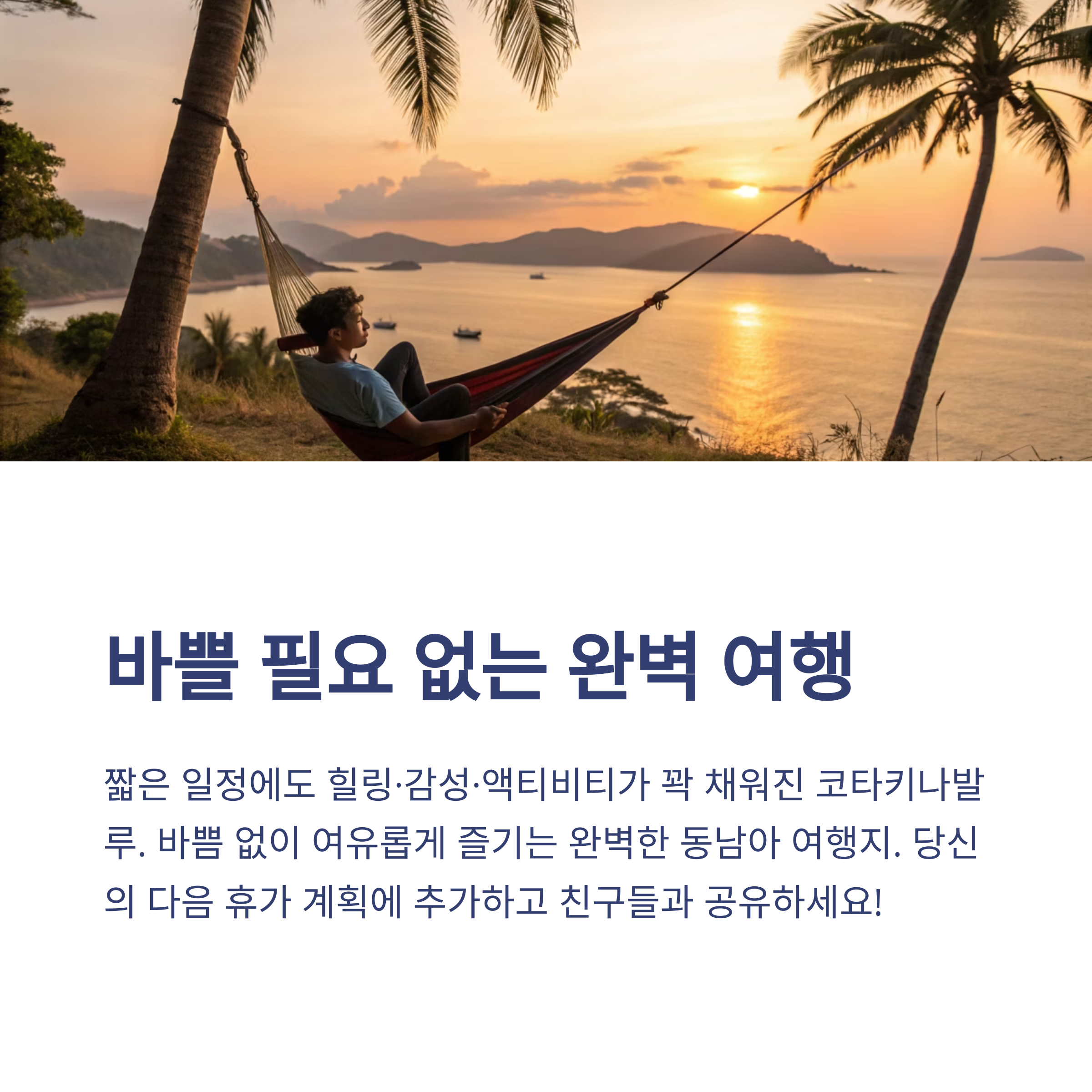 포인트: 코타 여행의 핵심! 바다와 노을, 바람과 힐링이 모두 담긴 하루
