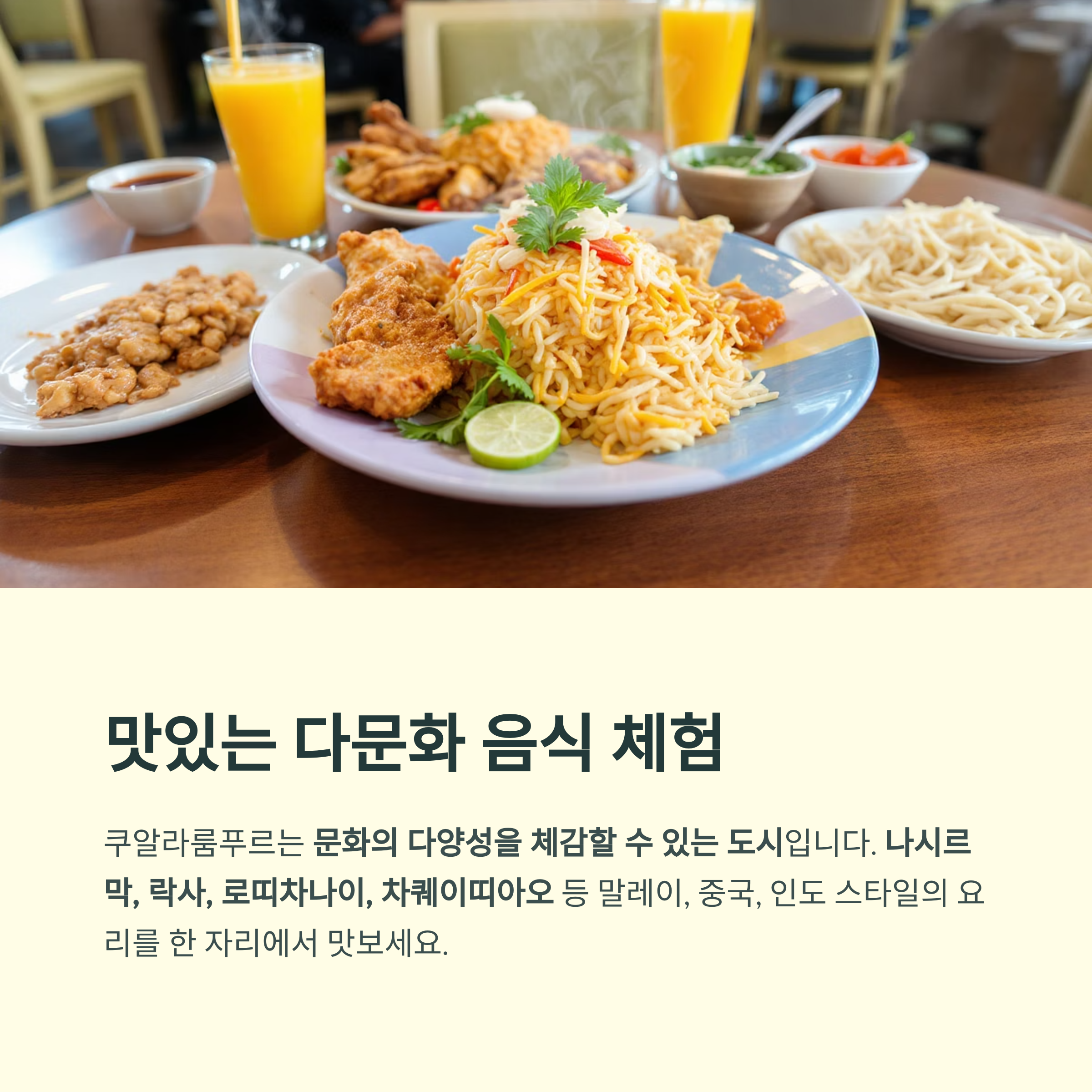쿠알라룸푸르는 음식만으로도 문화의 다양성을 체감할 수 있는 도시입니다.