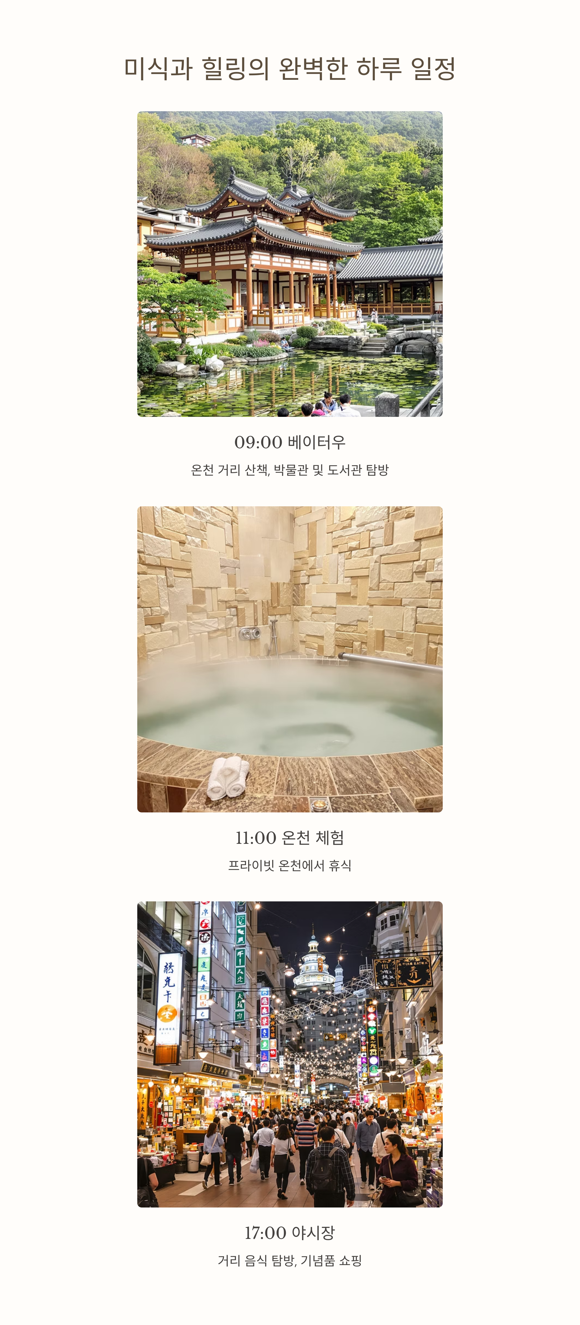 "온천에서 힐링 후 야시장에서 에너지 충전까지,