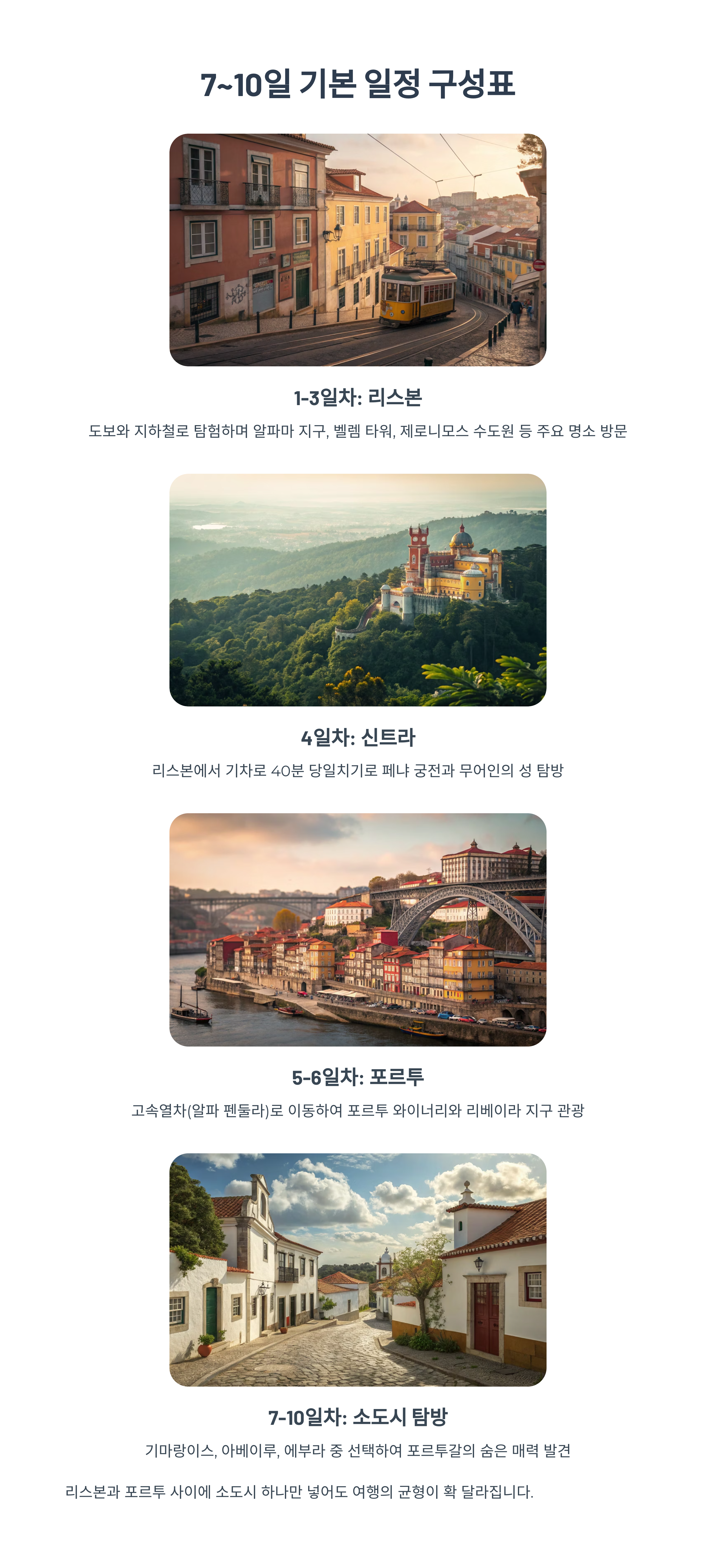 포르투갈 기본 일정 구성표 (7~10일 기준)