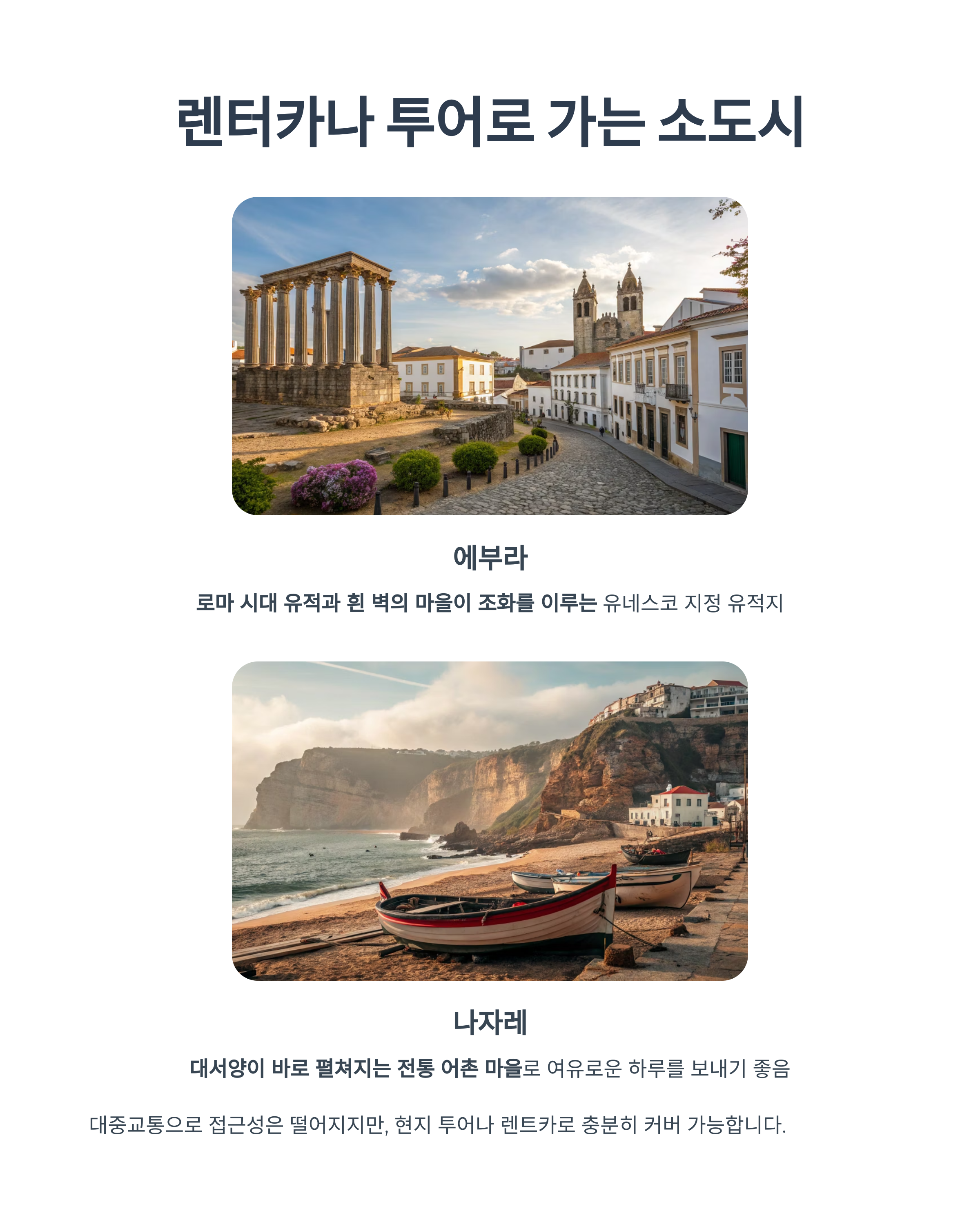 리스본과 포르투만 둘러보는 기본 루트도 좋지만, 시간이 허락된다면 소도시를 포함한 루트가 여행의 깊이를 더해줍니다.