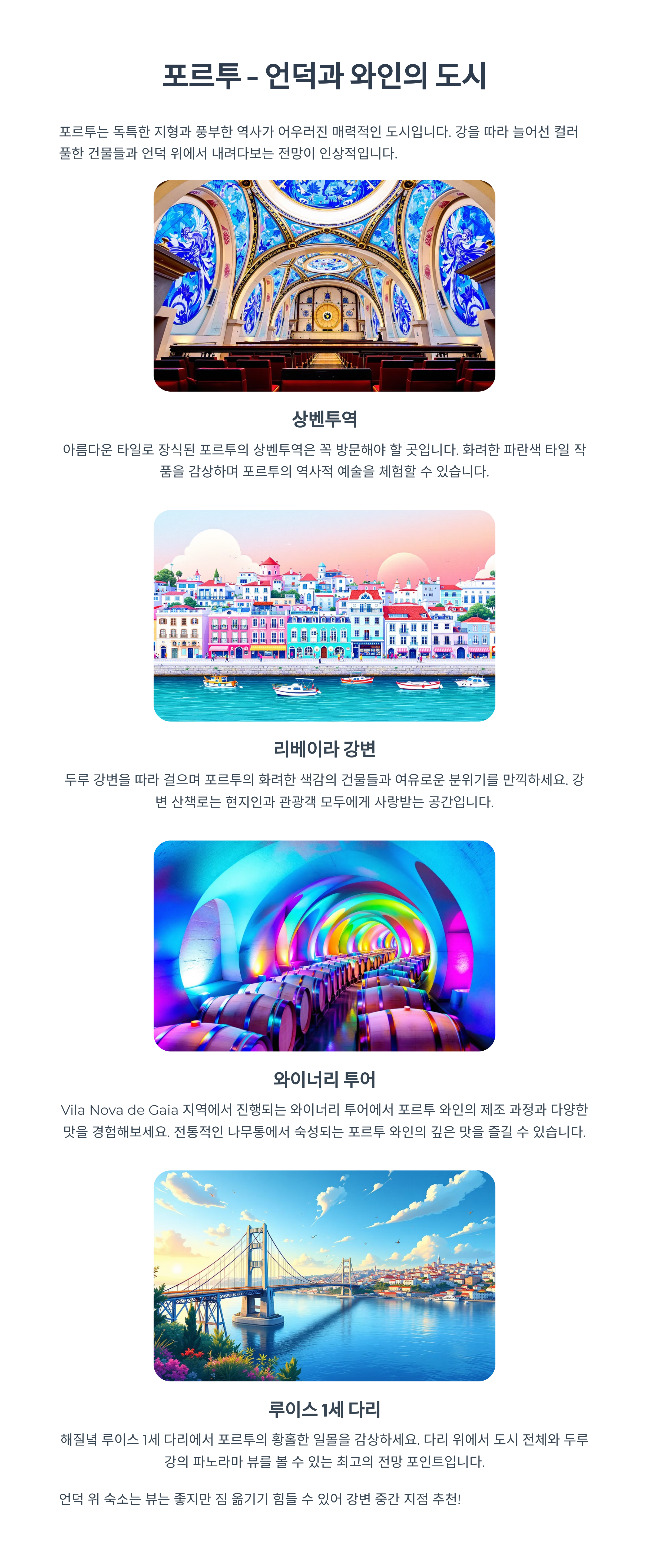 이 글에서는 7박 8일 또는 9~10일 기준으로 포르투갈을 효율적으로 여행할 수 있는 루트와 소도시 추천을 정리했습니다.