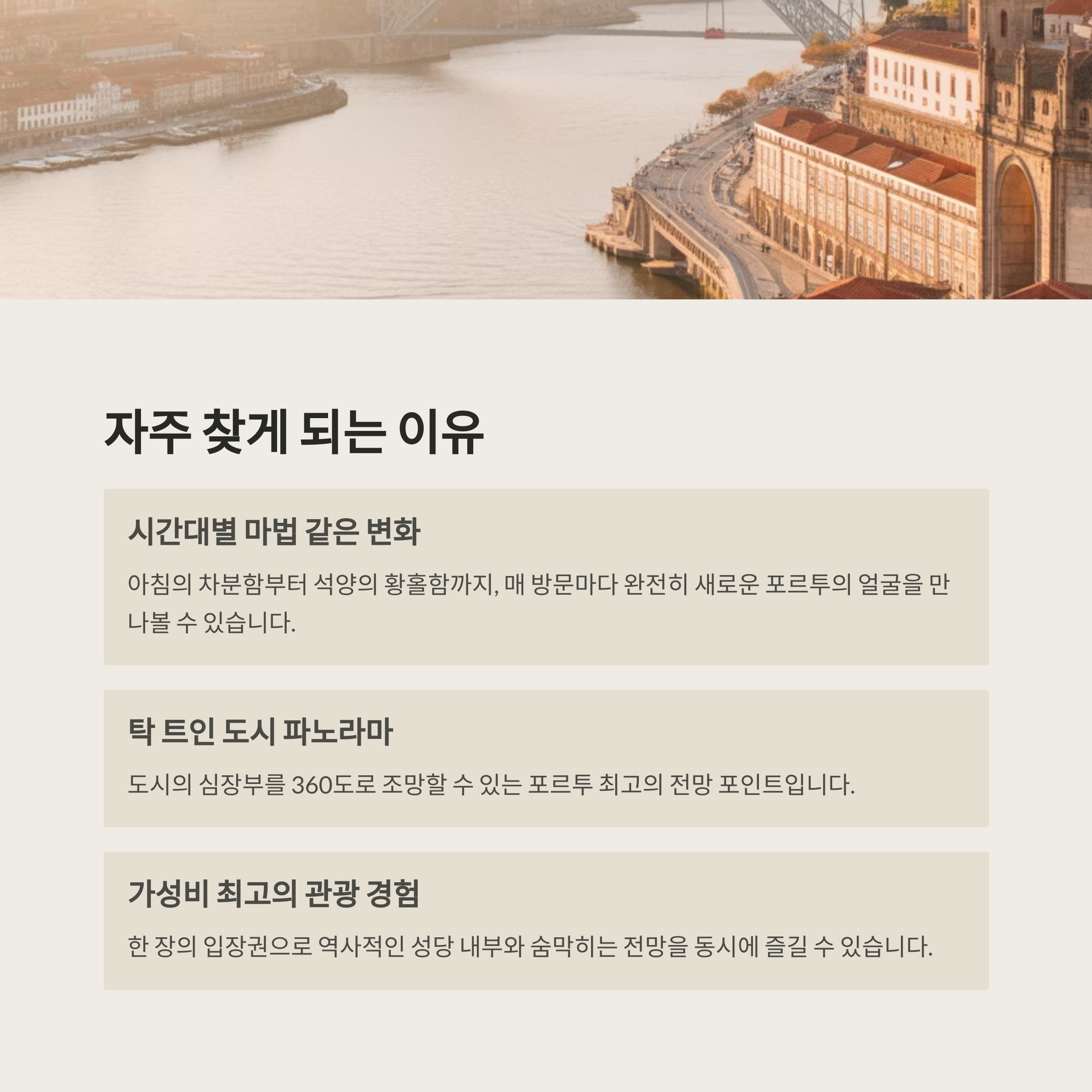 - Q: 포르투 대성당, 이미 한 번 봤으면 끝 아닌가요?