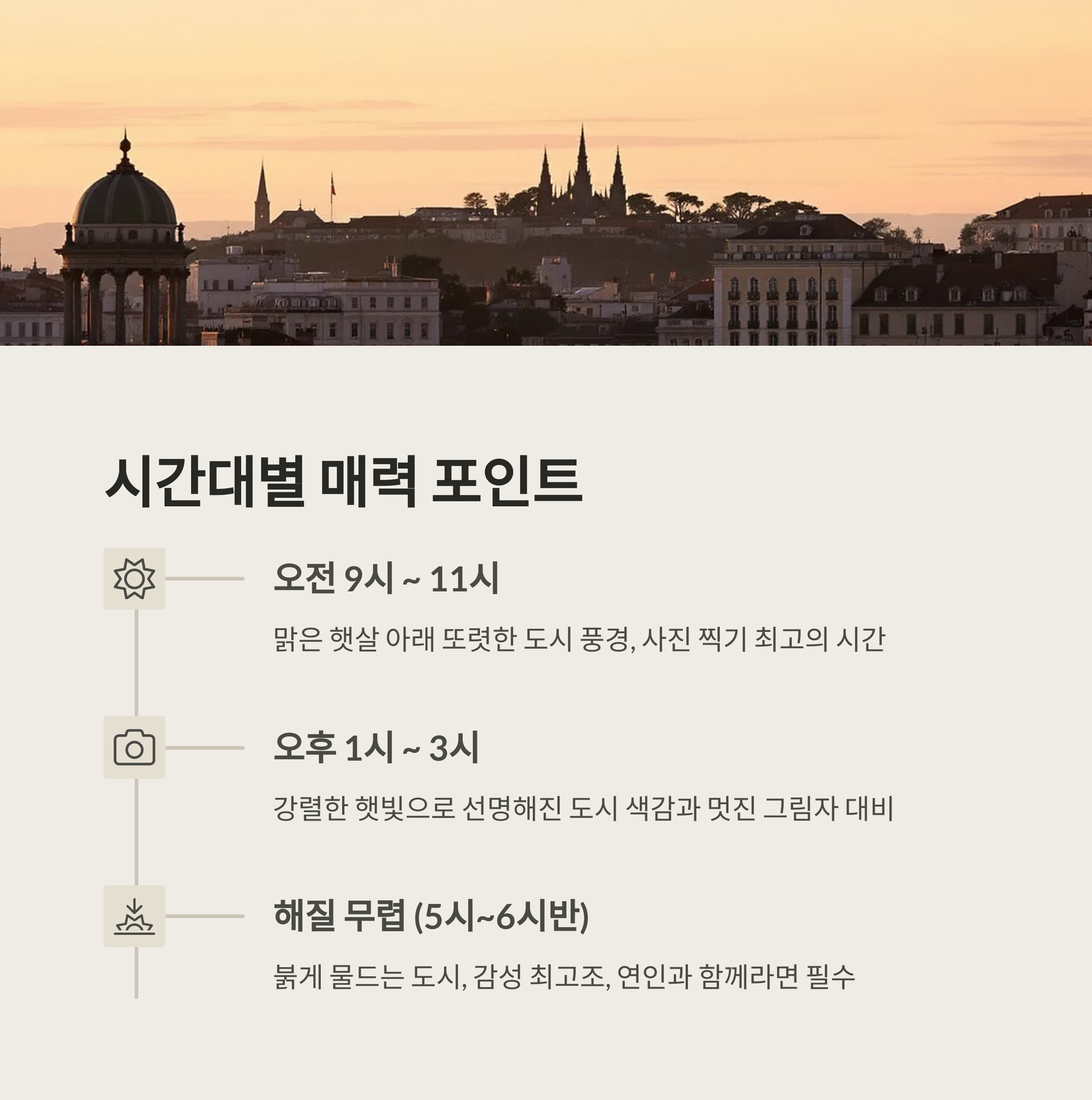 맑은 햇살 아래 도시가 또렷하게 살아납니다. 사진 찍기 최고. - 오후 1시 ~ 3시
