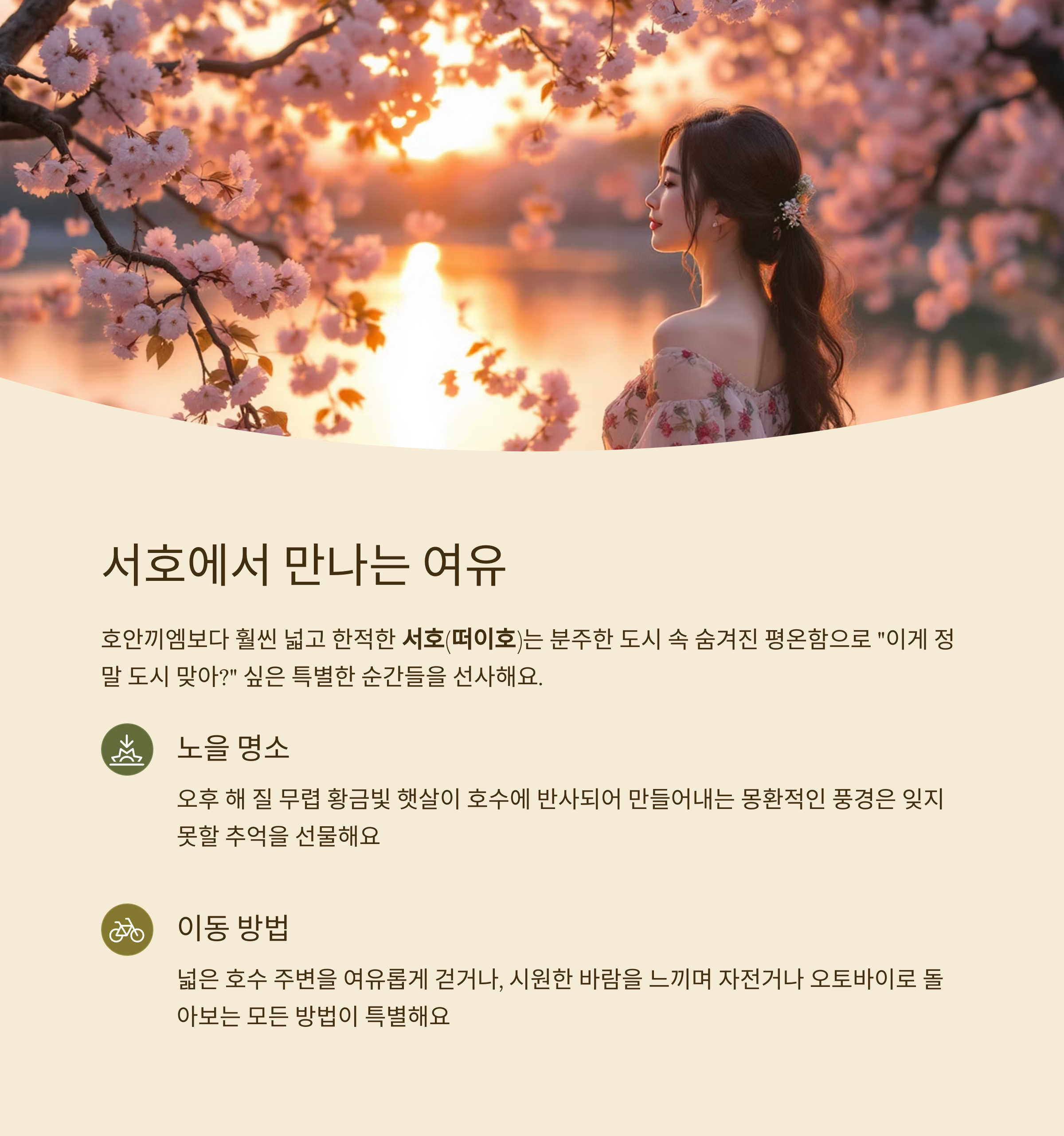 | 14:00 | 서호 이동 | 카페 투어 & 오후 산책 |