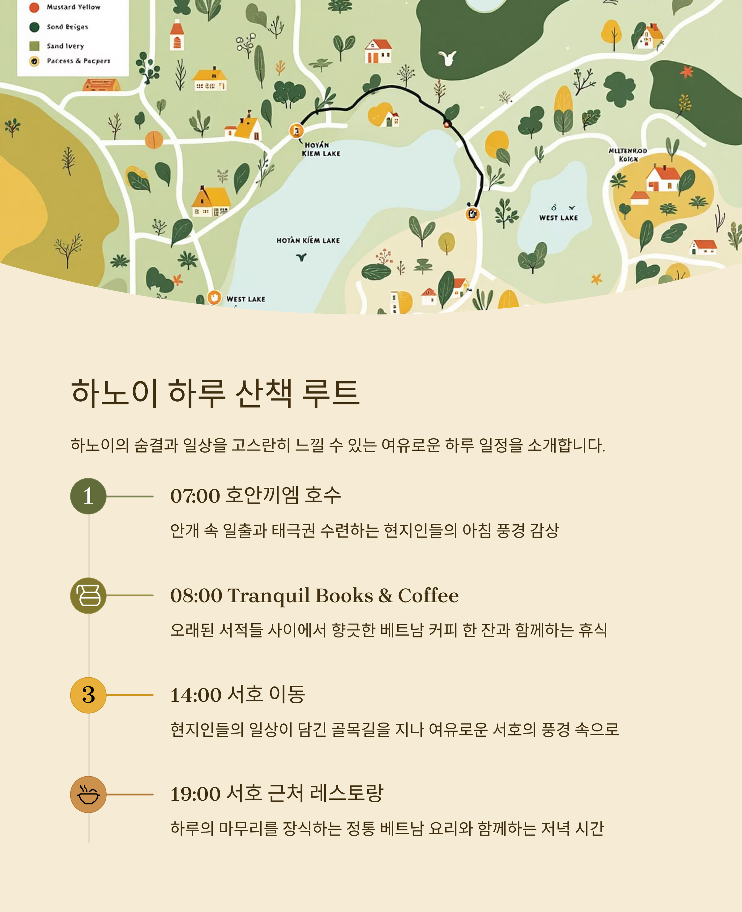 이번 글에서는 하노이에서 여유롭게 산책할 수 있는 호수 루트와,