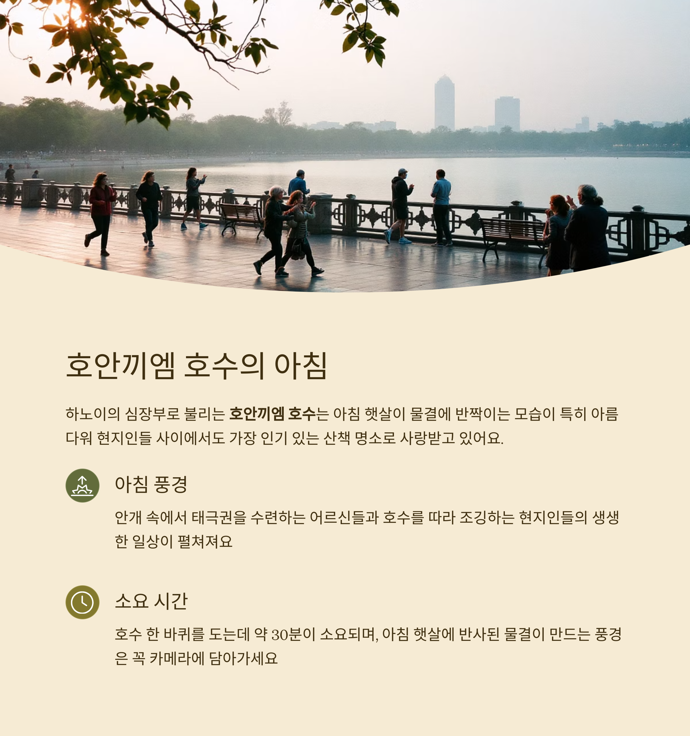 아침 햇살 따라 걷는 호안끼엠 호수 산책