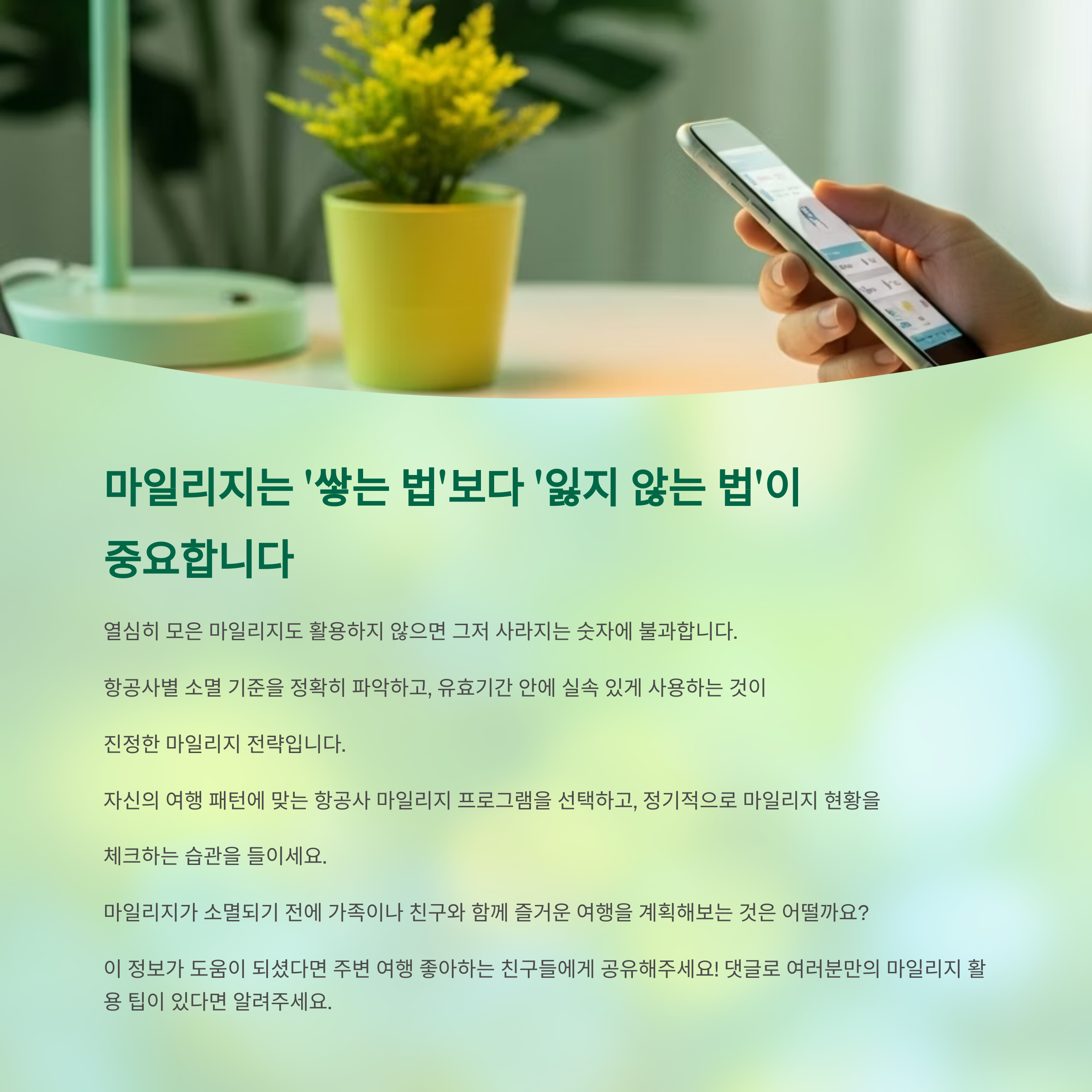 마무리하며: 마일리지는 ‘쌓는 법’보다 ‘잃지 않는 법’이 먼저예요