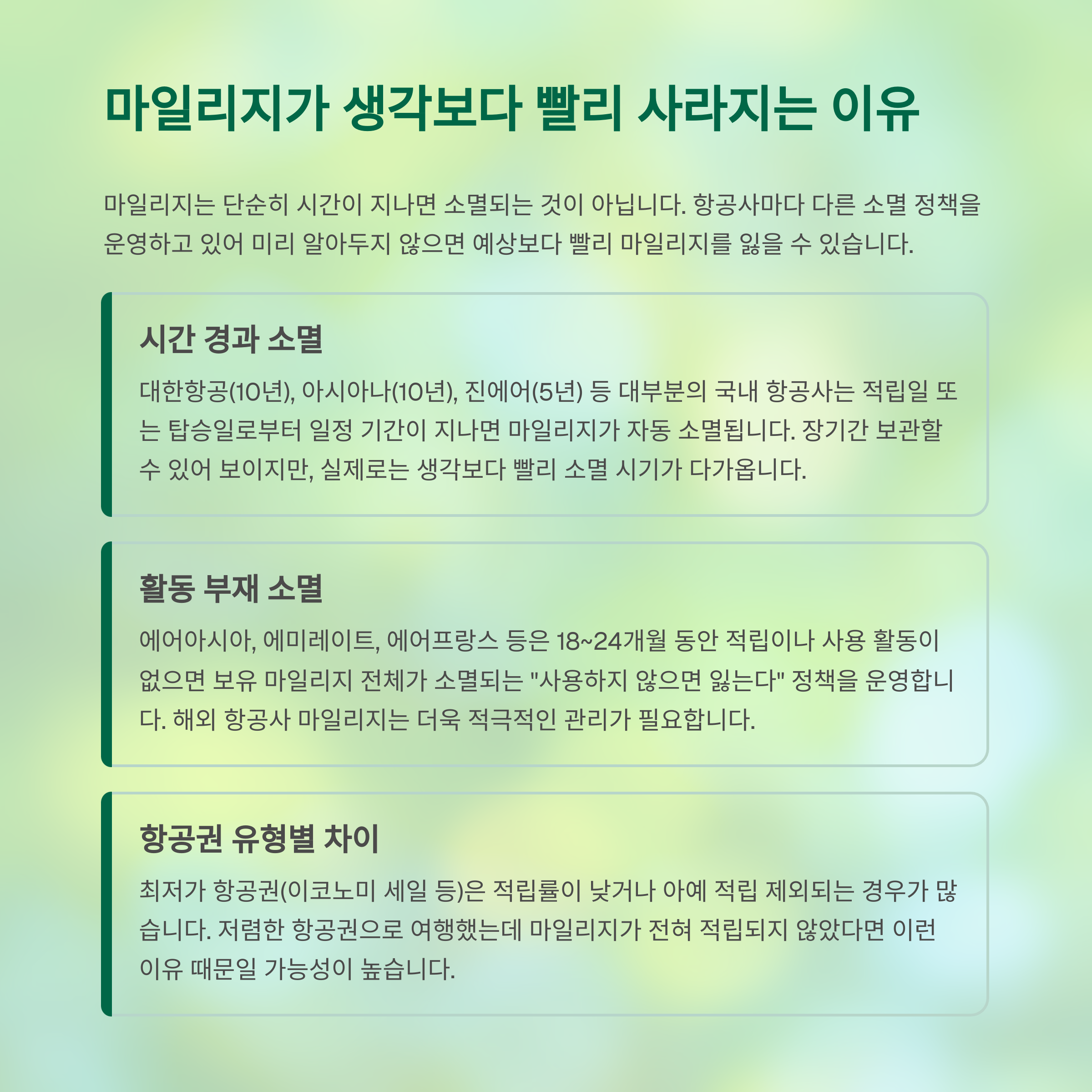 마일리지는 단순히 시간이 지나면 소멸되는 구조가 아니라