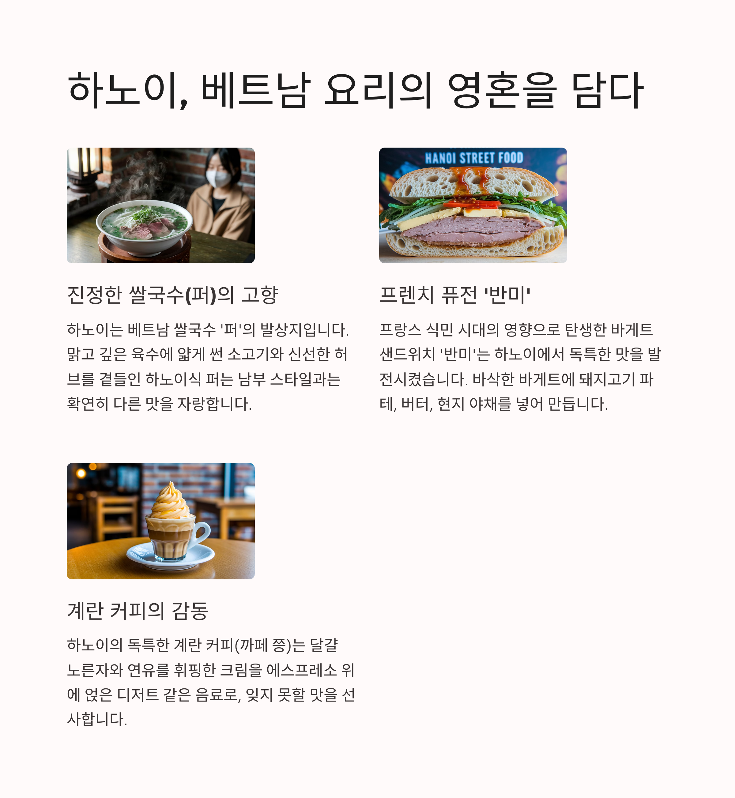 "하노이는 베트남 로컬 음식의 진수를 맛볼 수 있는 도시입니다."