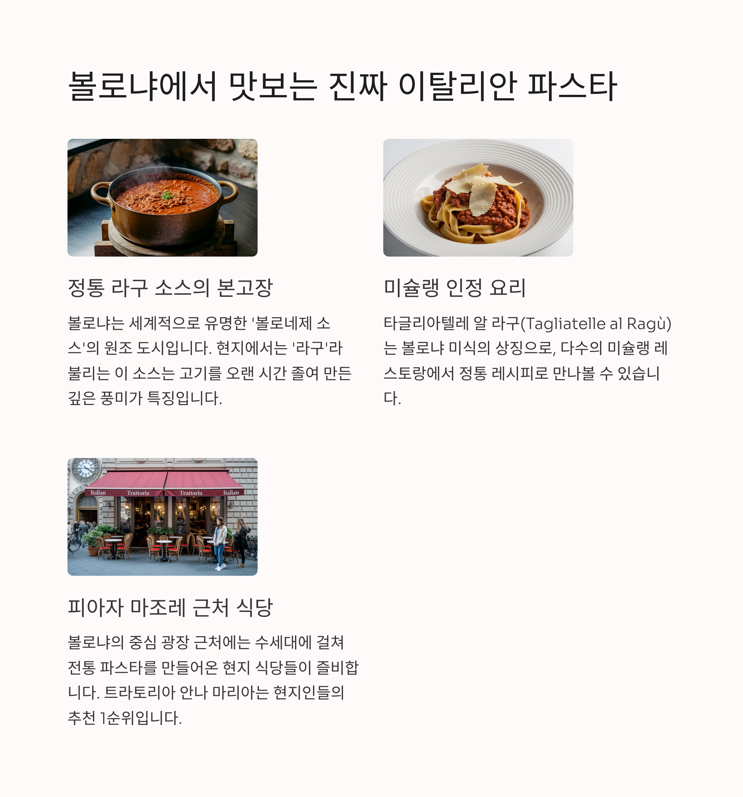 "볼로냐는 이탈리아 미식의 중심지로 손꼽히는 도시입니다."