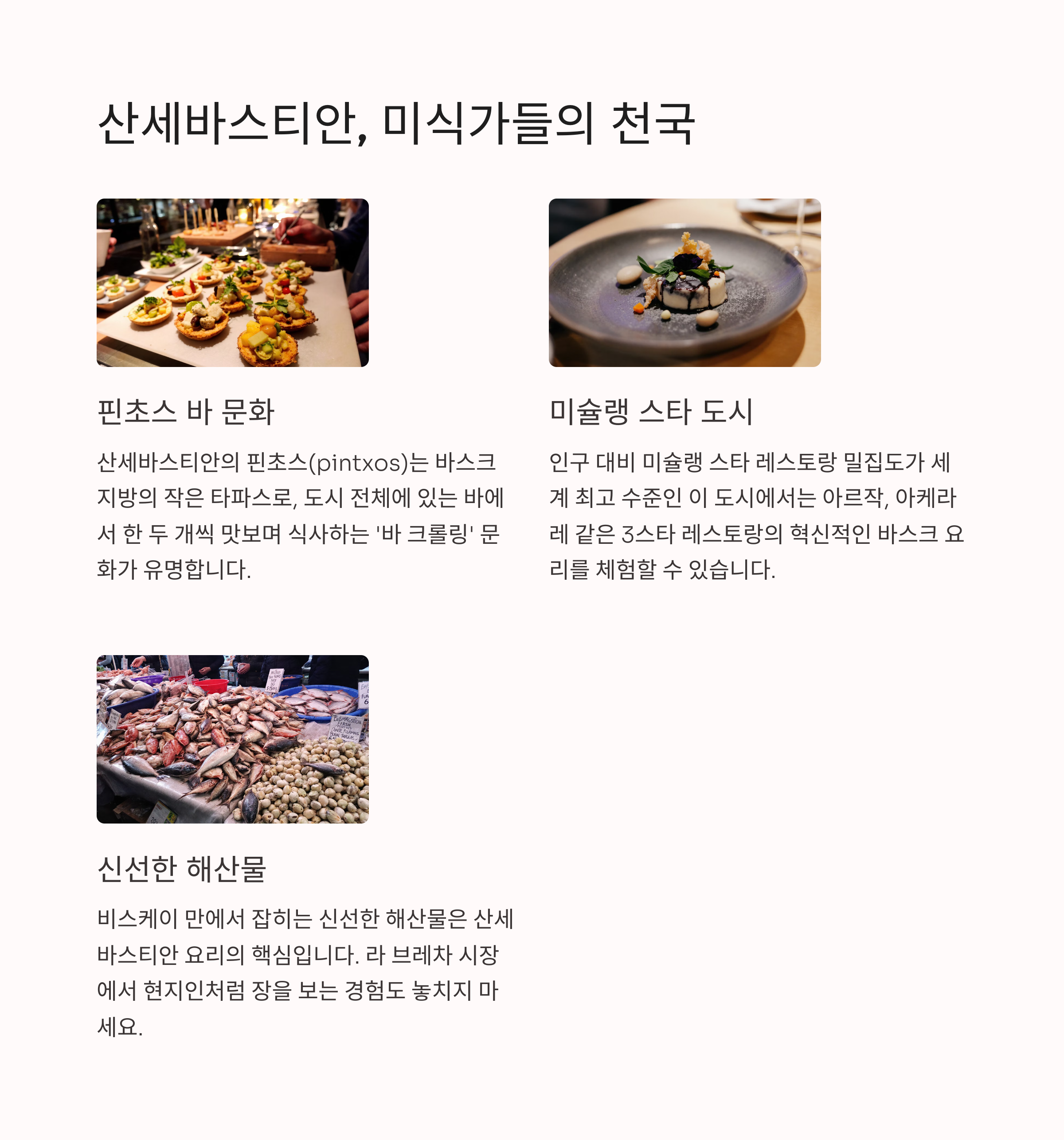 "산세바스티안은 작은 도시지만 미슐랭 스타 레스토랑 밀집 지역으로 유명합니다."