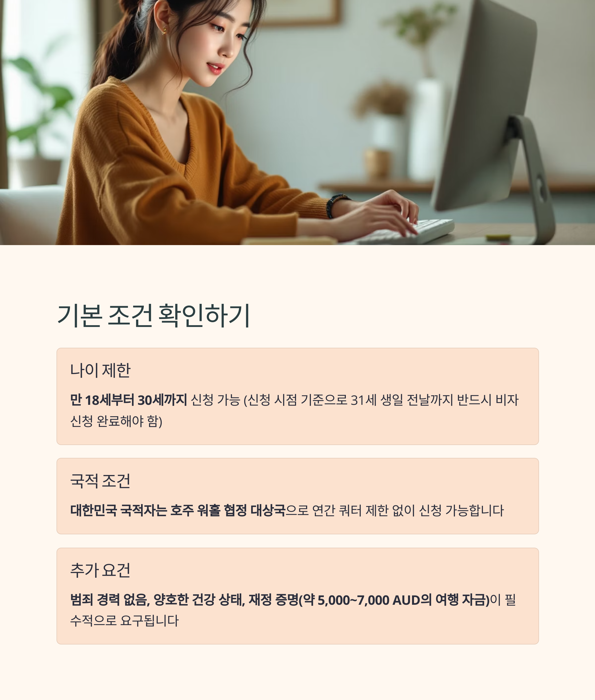 호주 워킹홀리데이 비자는 만 18세~30세(한국 국적 기준) 청년에게