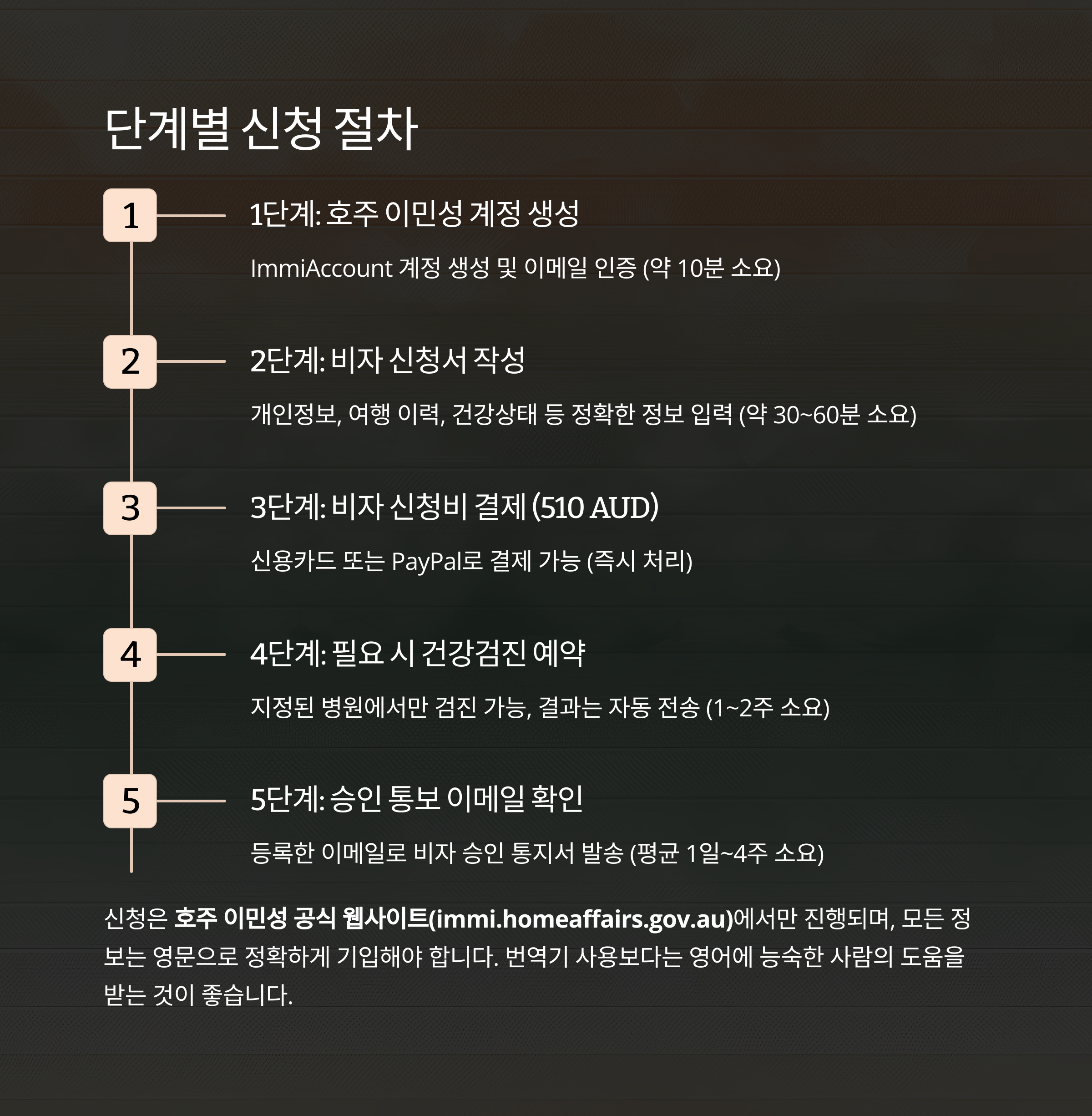 | 3단계 | 비자 신청비 결제 (510 AUD) | 즉시 |