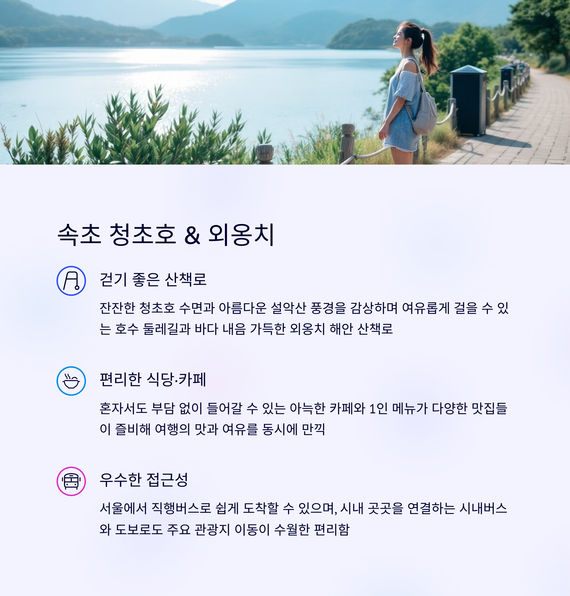 속초는 여자 혼자 떠나도 안전하고 외롭지 않은 도시입니다.