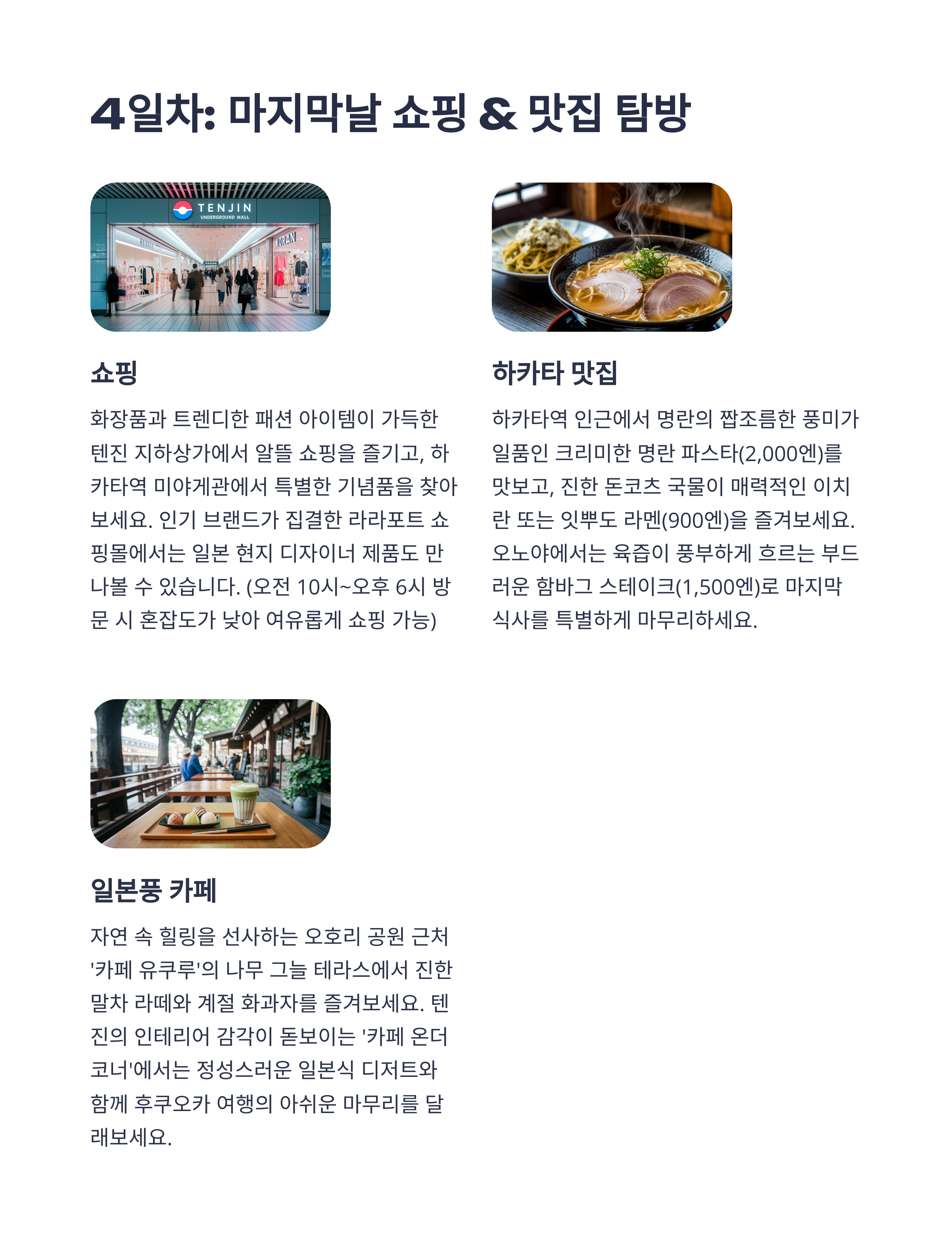 • 오후: 덴진 카페거리 or 캐널시티 쇼핑