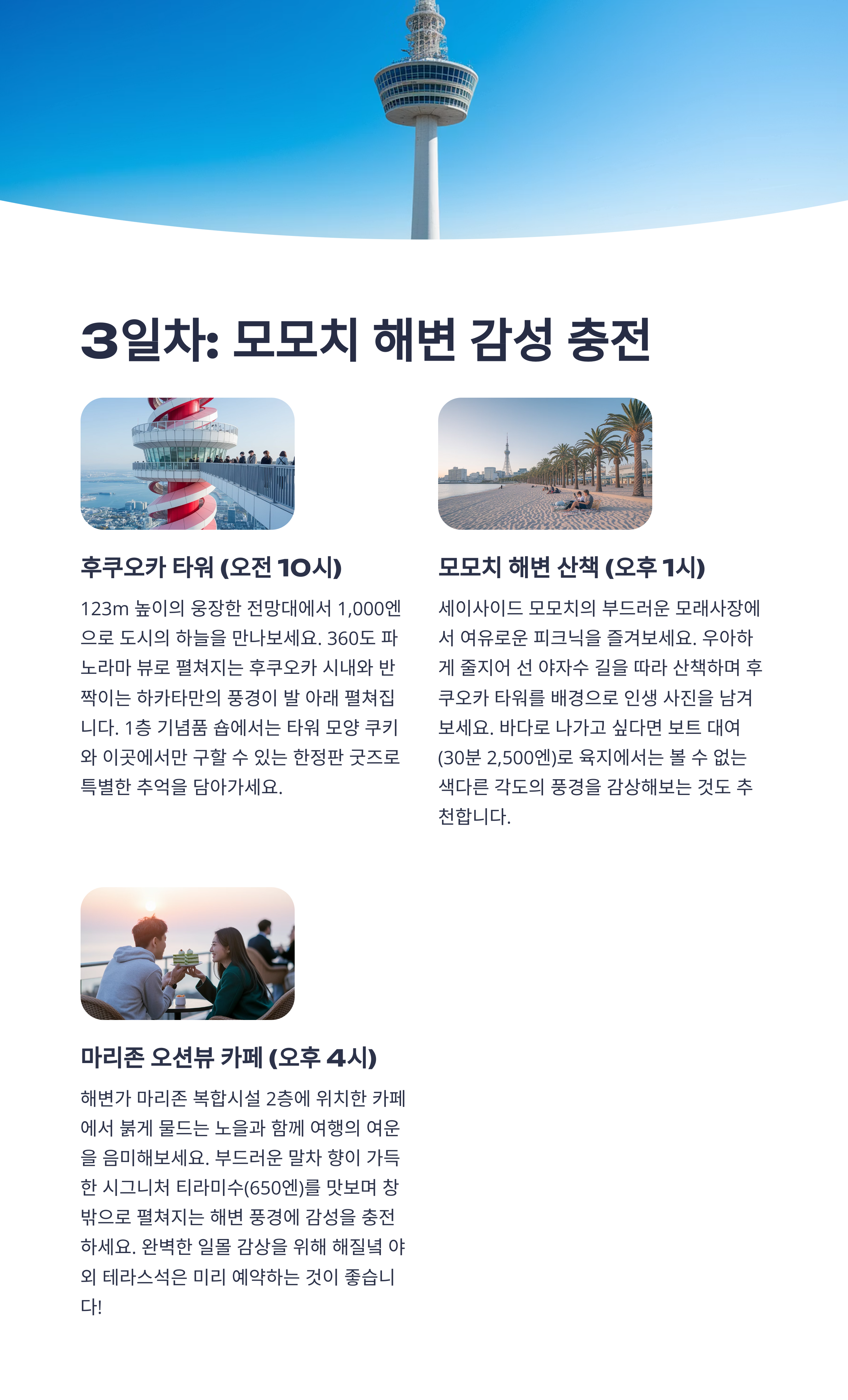 • 점심: 해변 카페 or 후쿠오카타워 전망대 투어