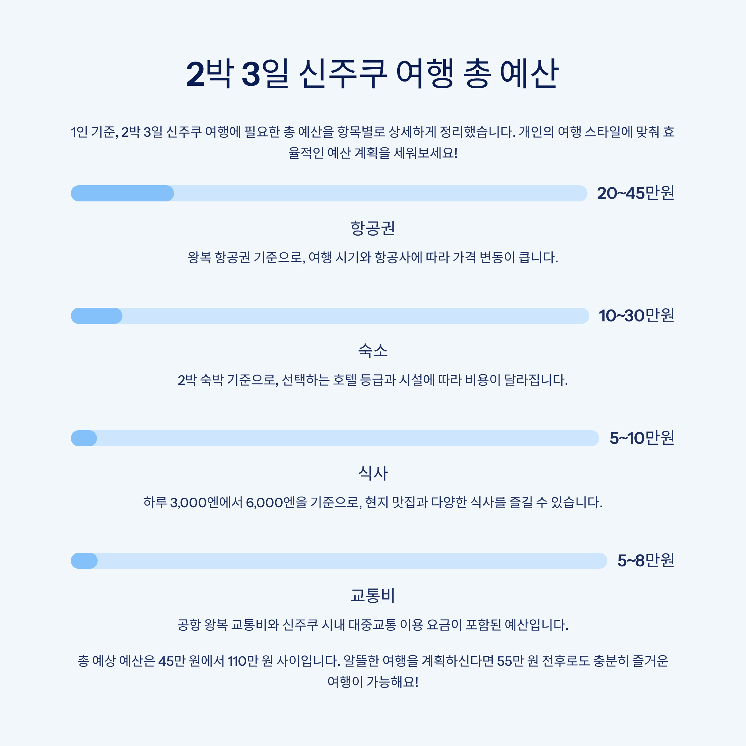 ※ 저예산 여행: 55만 원 전후로도 충분히 가능해요!