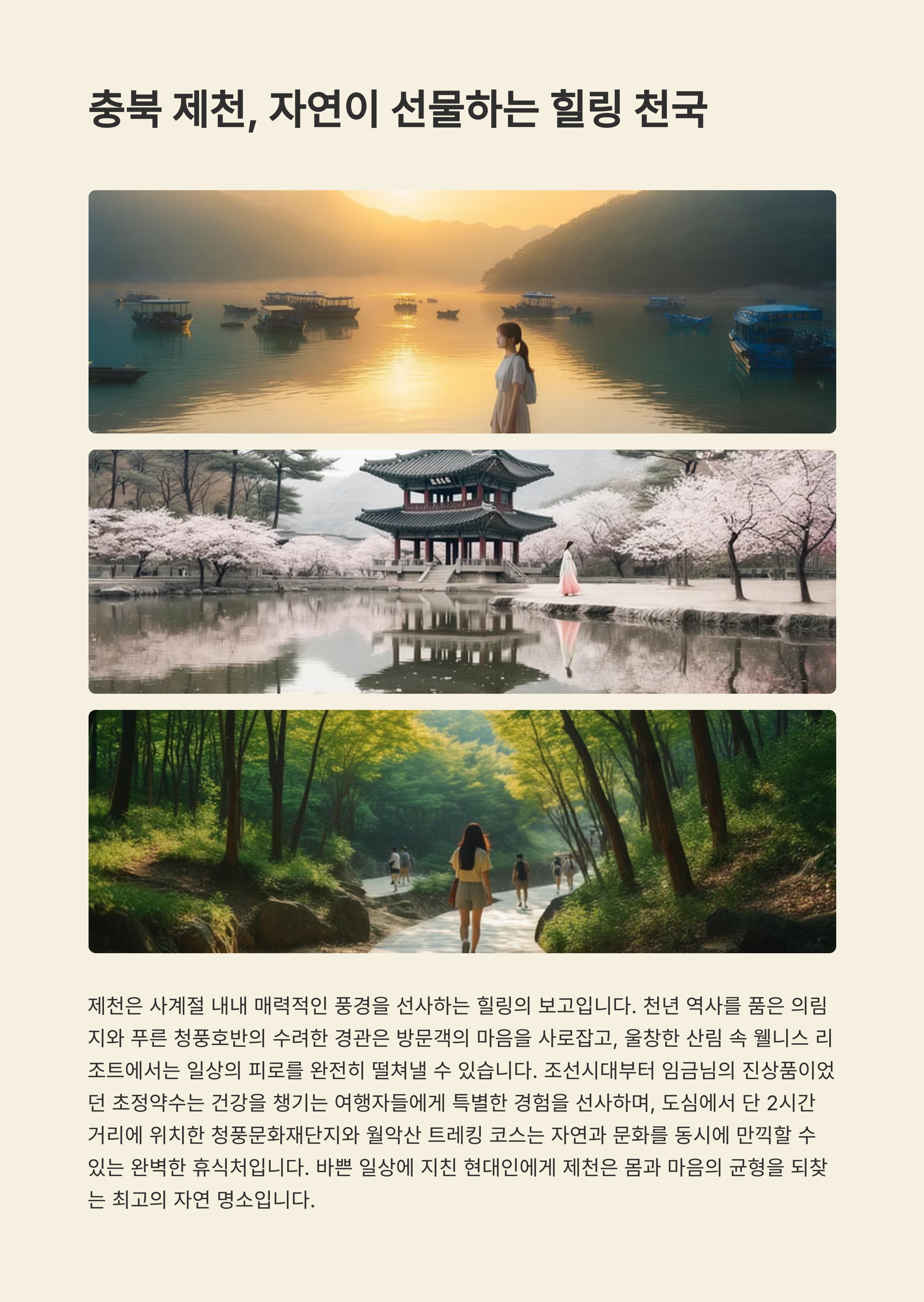 제천은 의림지, 청풍호반, 산야초 마을 등 자연 휴양지로 가득합니다.
