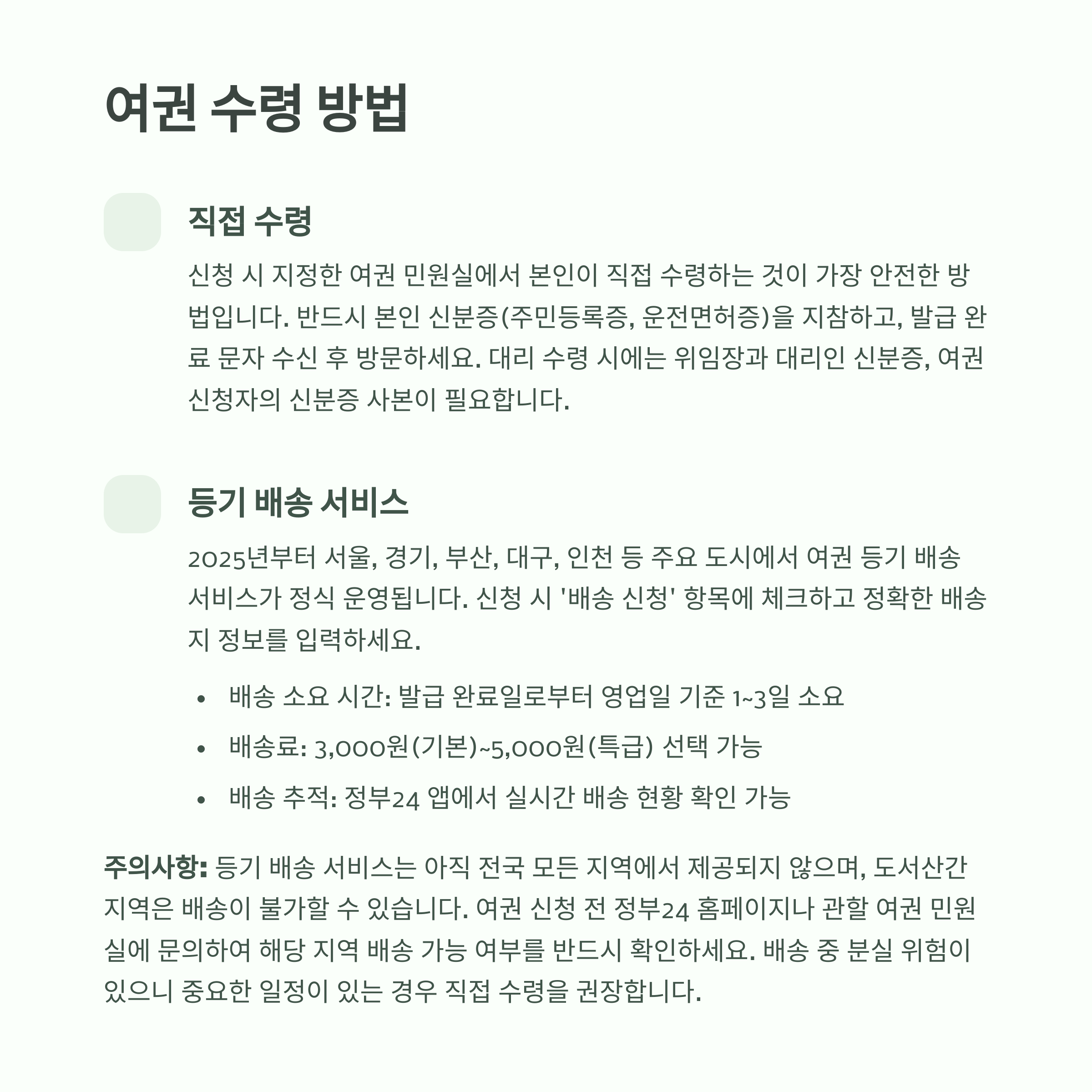 2025년부터는 일부 지역에 한해 여권 등기 배송 서비스도 운영 중이에요.