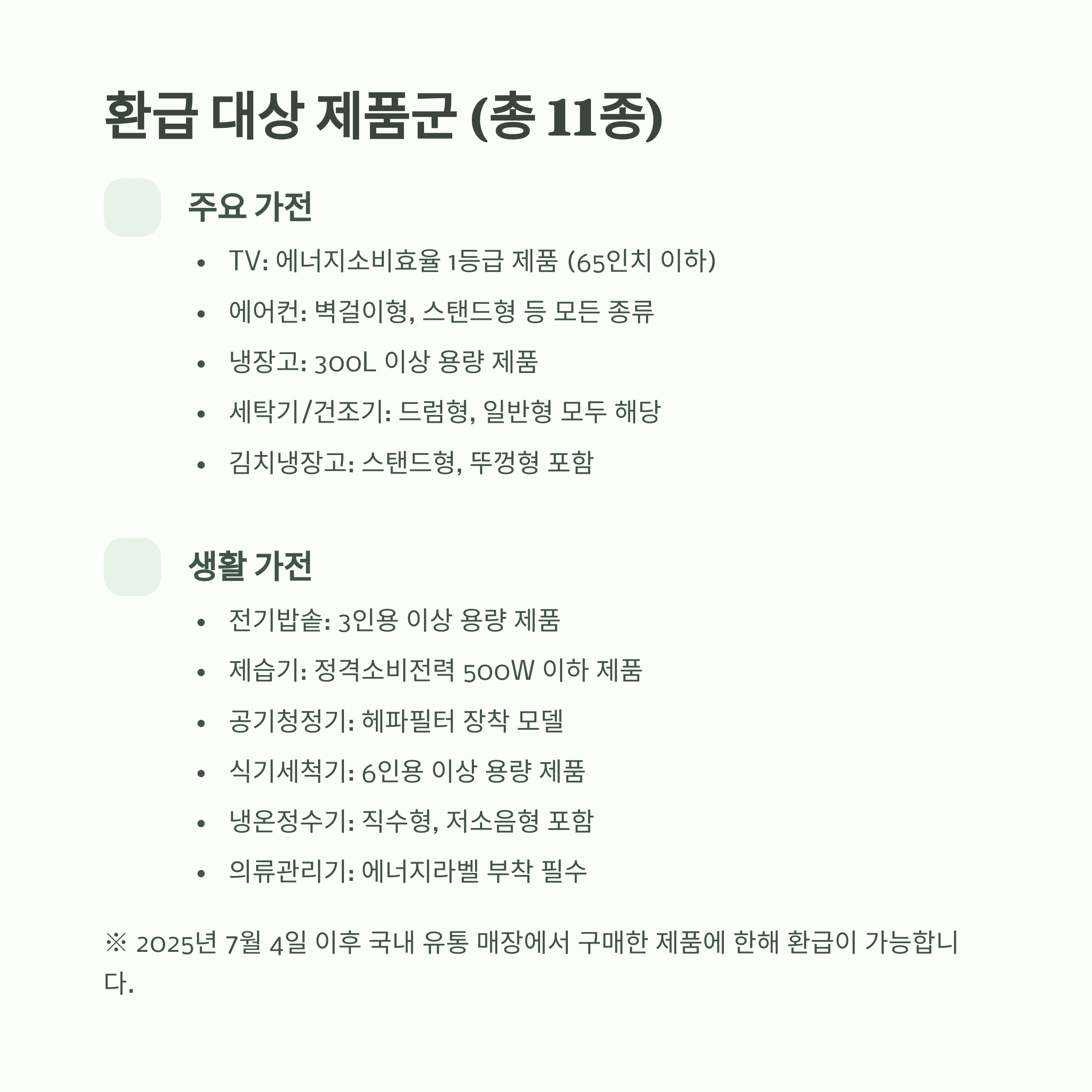 지난 7월 4일 이후 구매한 제품부터 소급 적용됩니다. - 이번 환급 정책은 전력 수요 감소, 에너지 절약 유도, 가전 내수 활성화 목적도 함께 갖고 있어요.