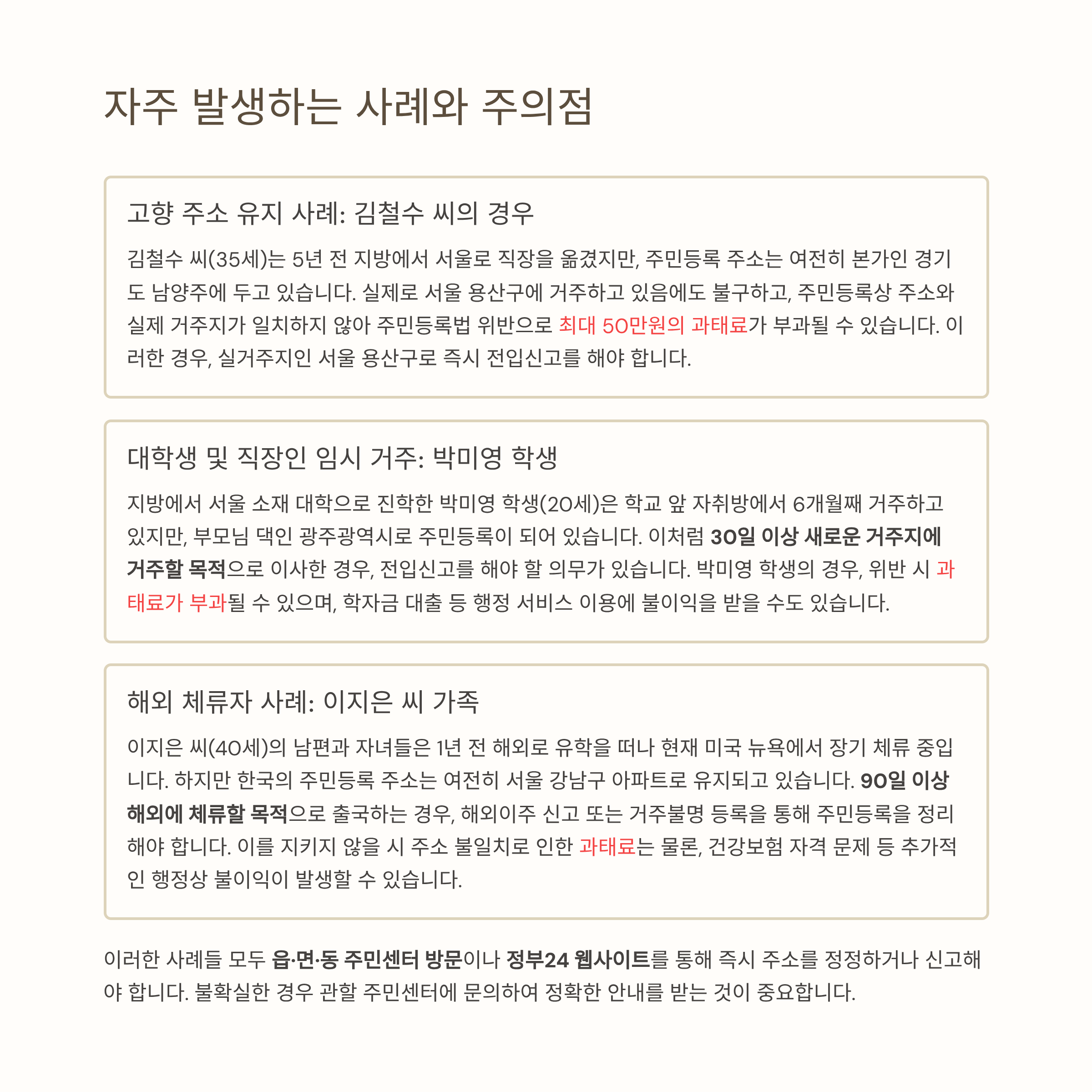 허위 주소 기재 시 최대 50만 원 과태료가 부과될 수 있습니다.