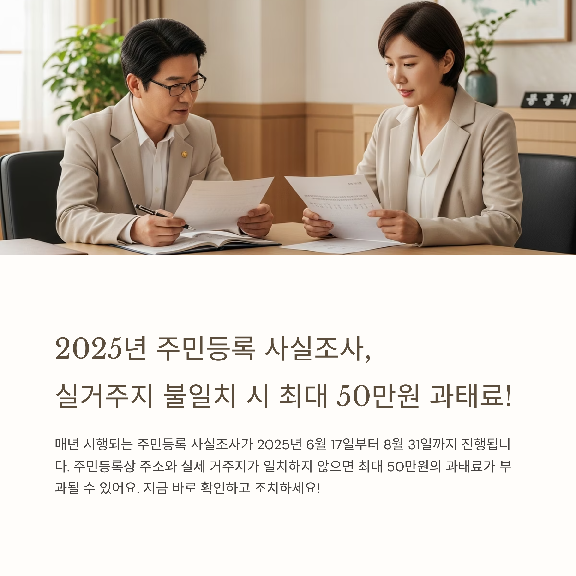 매년 정기적으로 시행되는 주민등록 사실조사가 2025년 8월 31일까지 진행됩니다.