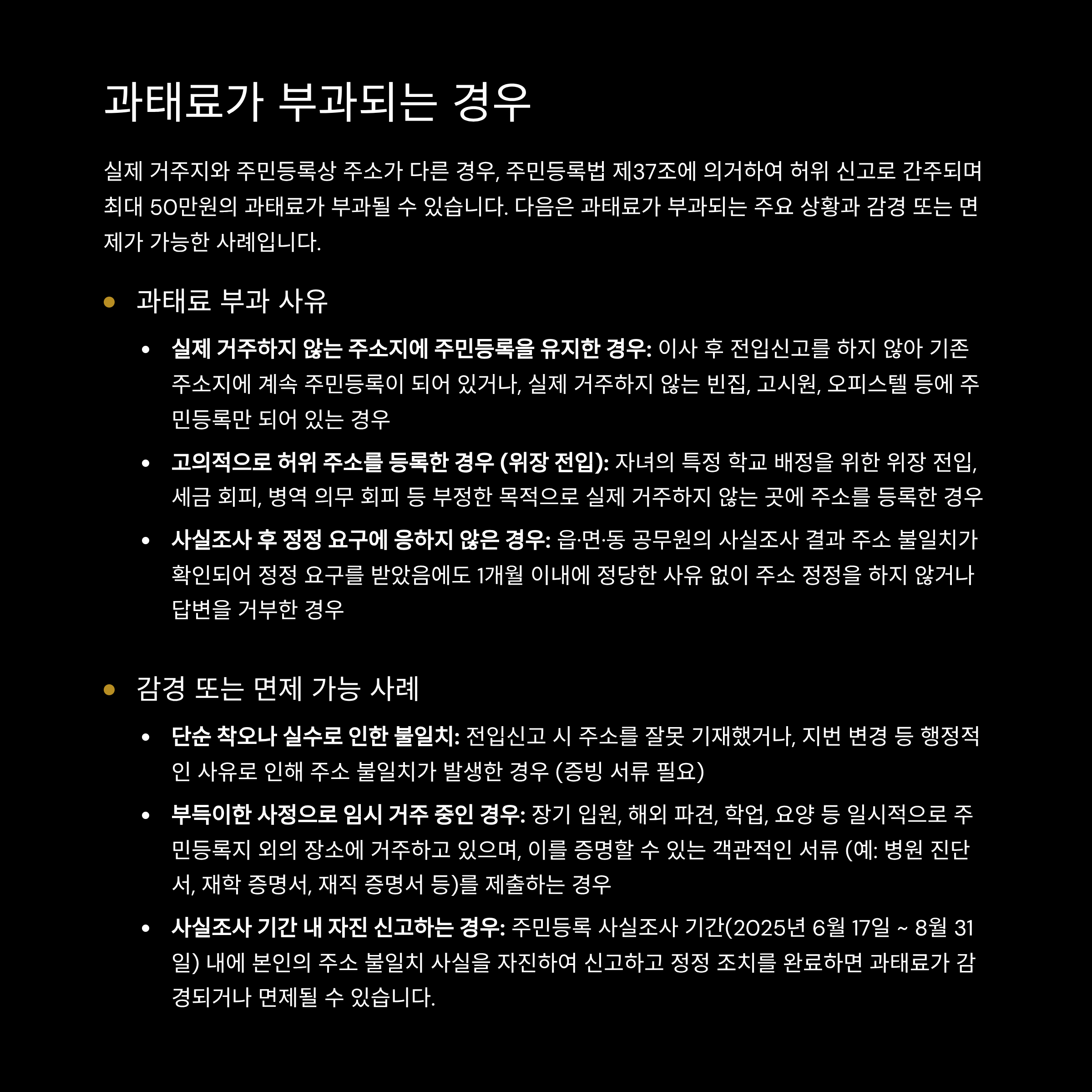 실제 거주지와 주민등록 주소가 다를 경우, 허위 신고로 간주되어