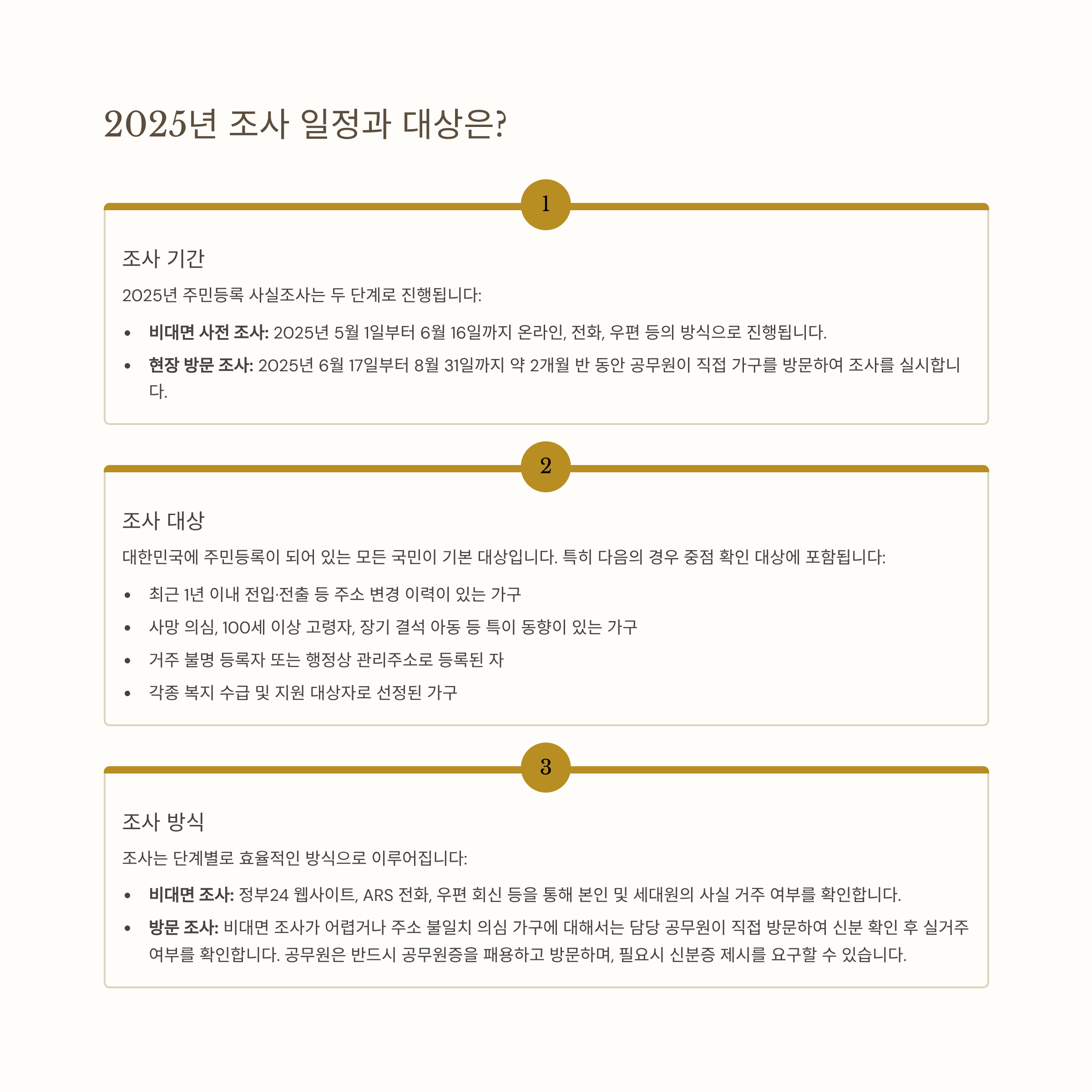 주민등록 사실조사는 실제 거주 여부와 등록 주소가 일치하는지 확인하는 국가 행정조사입니다.