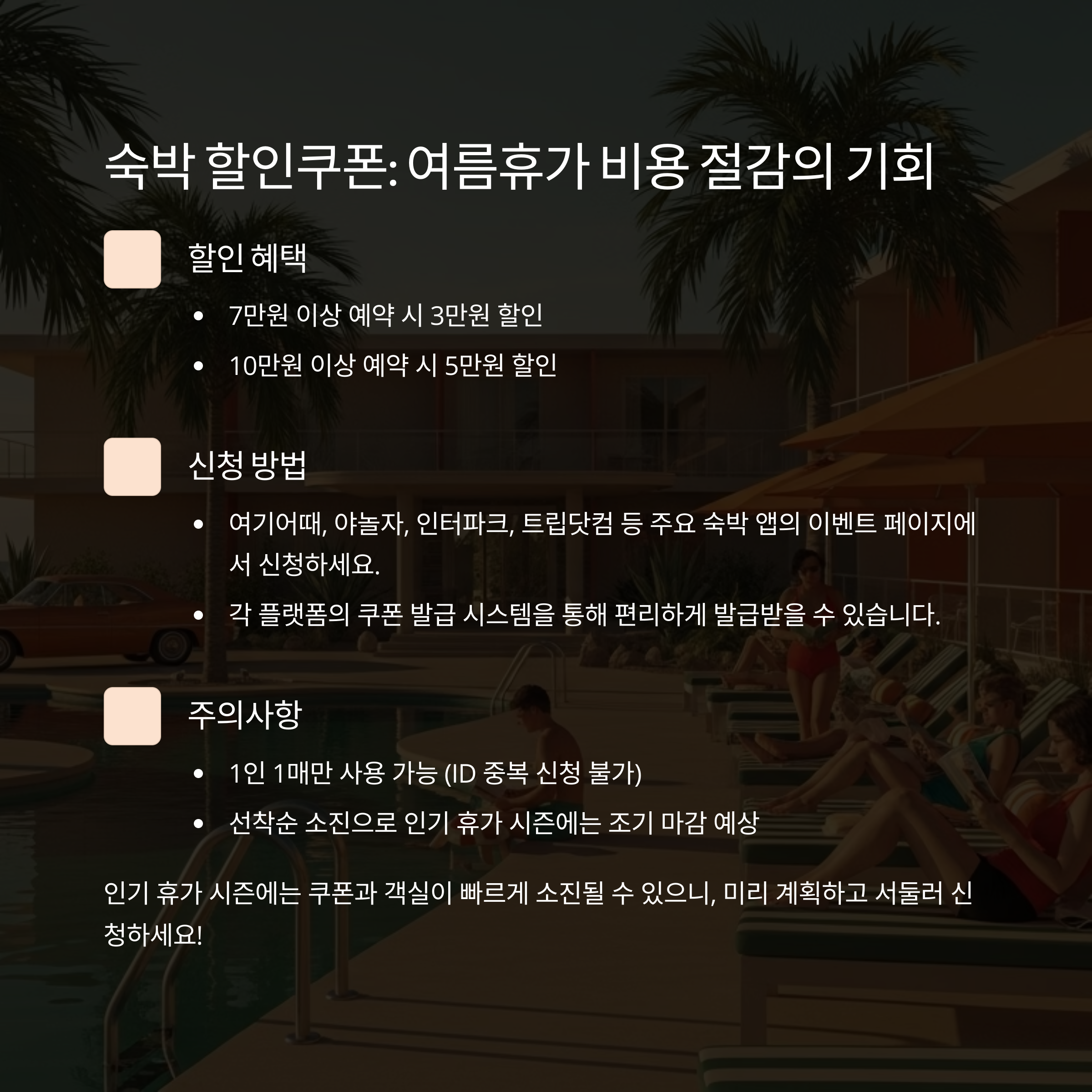 숙박 할인쿠폰: 여름휴가·가을여행 필수 혜택
