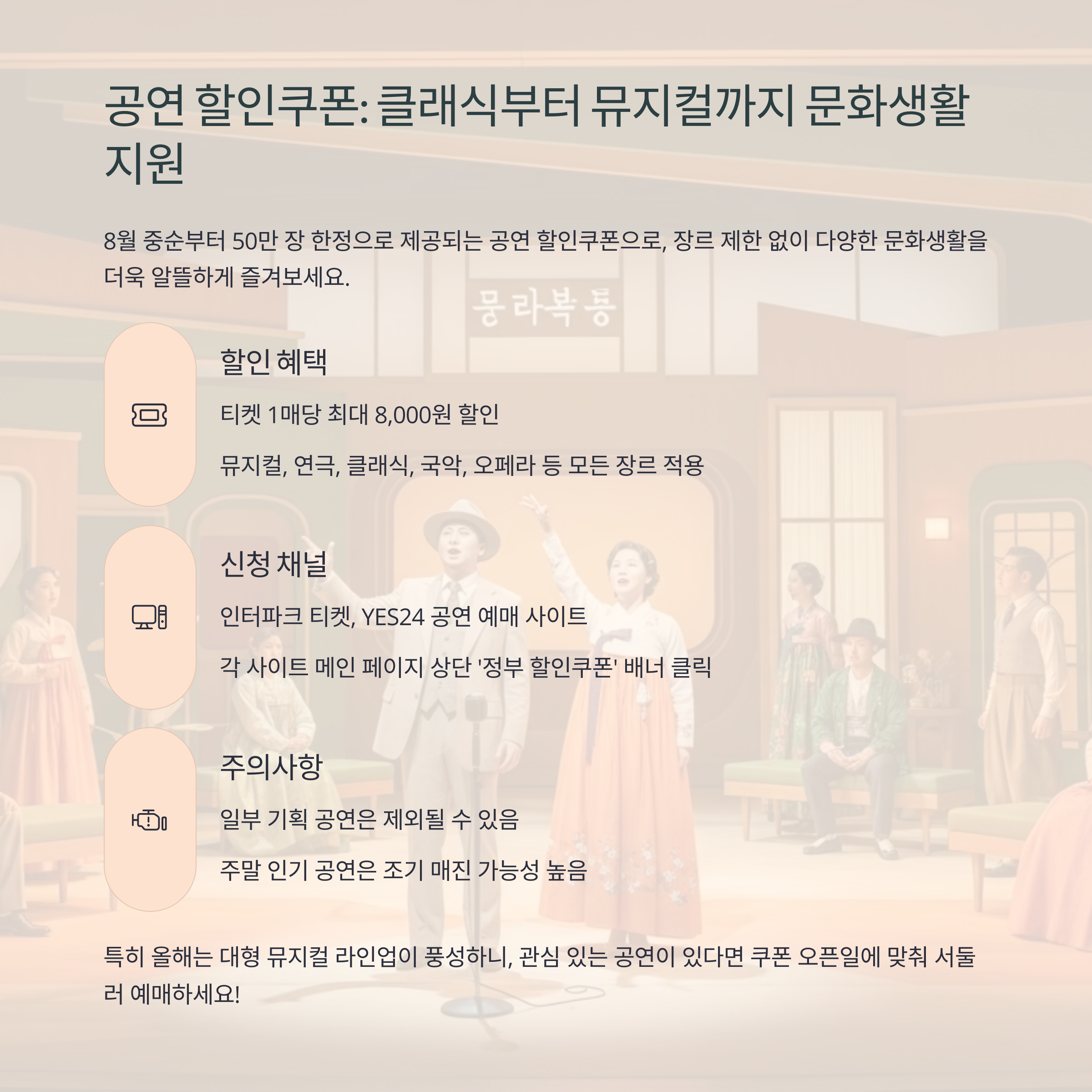 공연 할인쿠폰: 클래식부터 뮤지컬까지 다양하게 지원