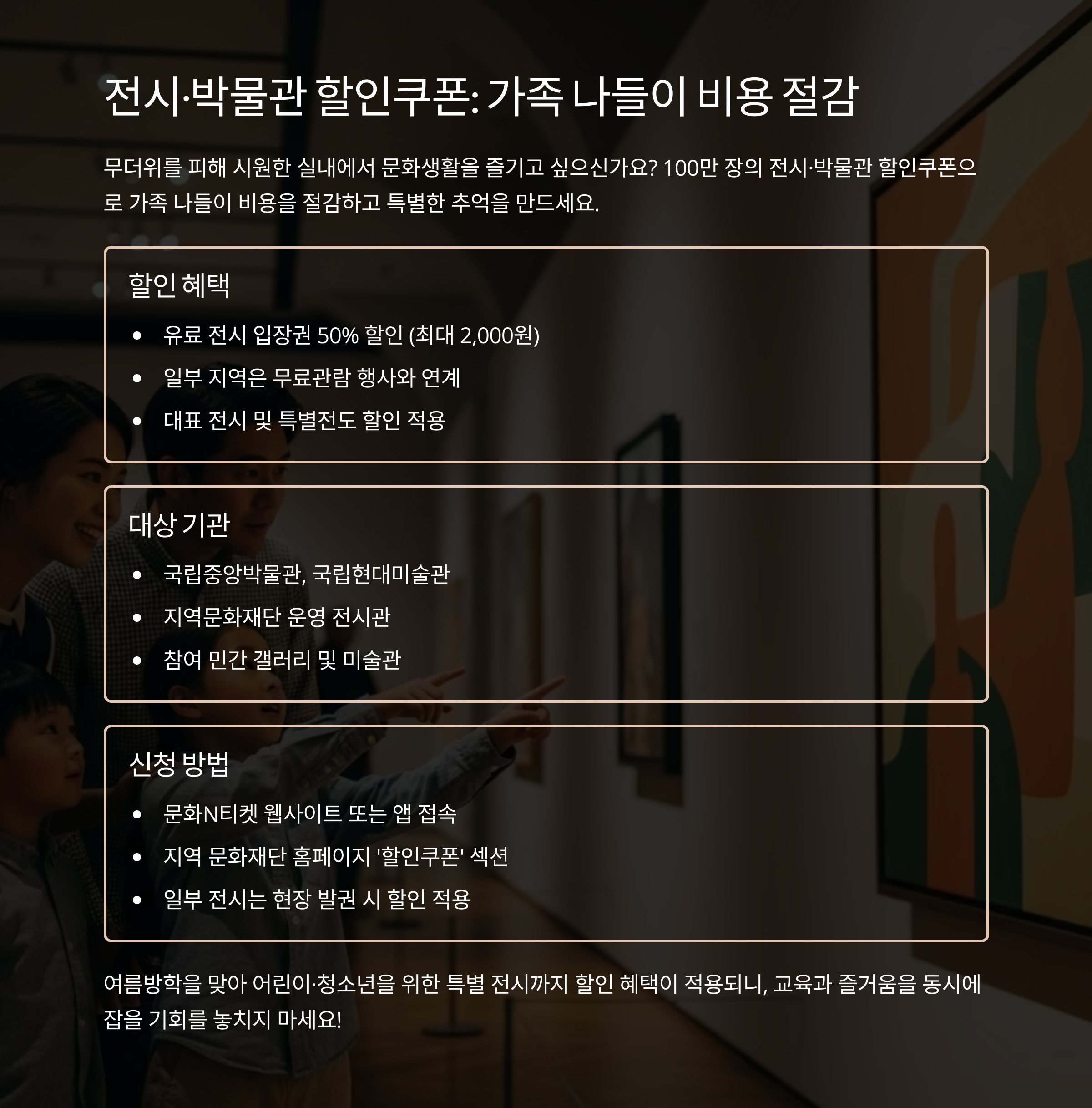 전시·박물관 할인쿠폰: 가족나들이에 딱 좋은 선택