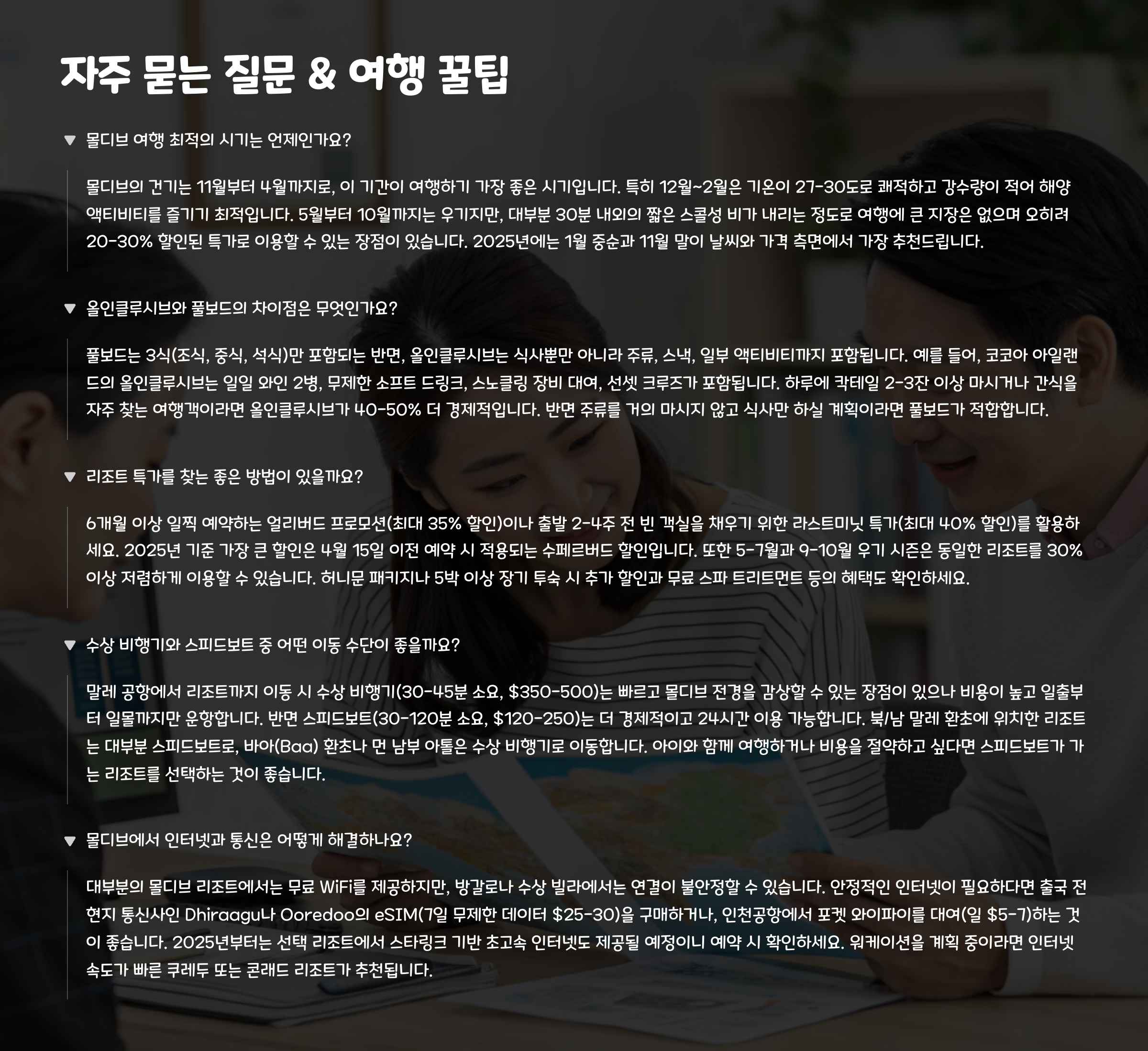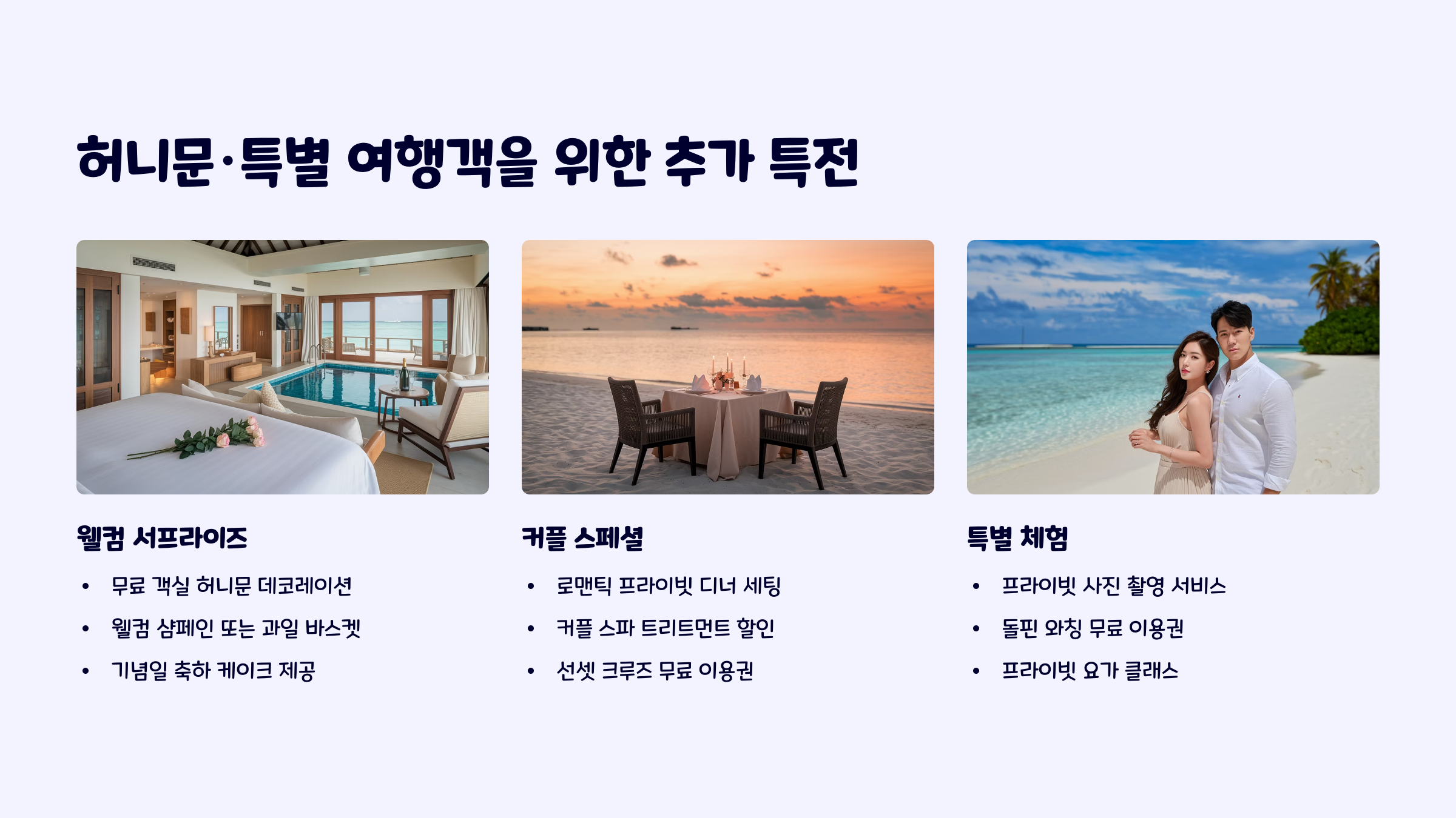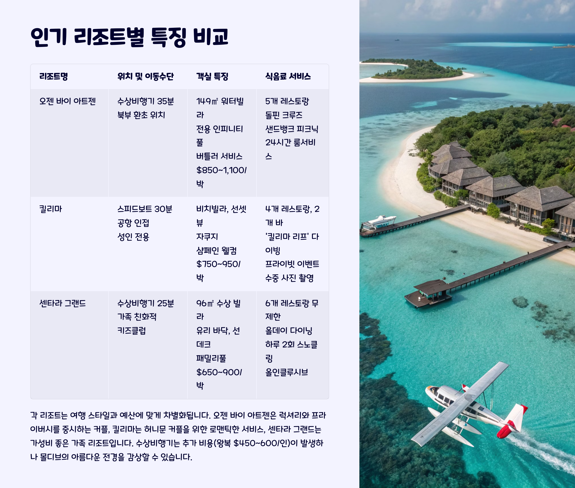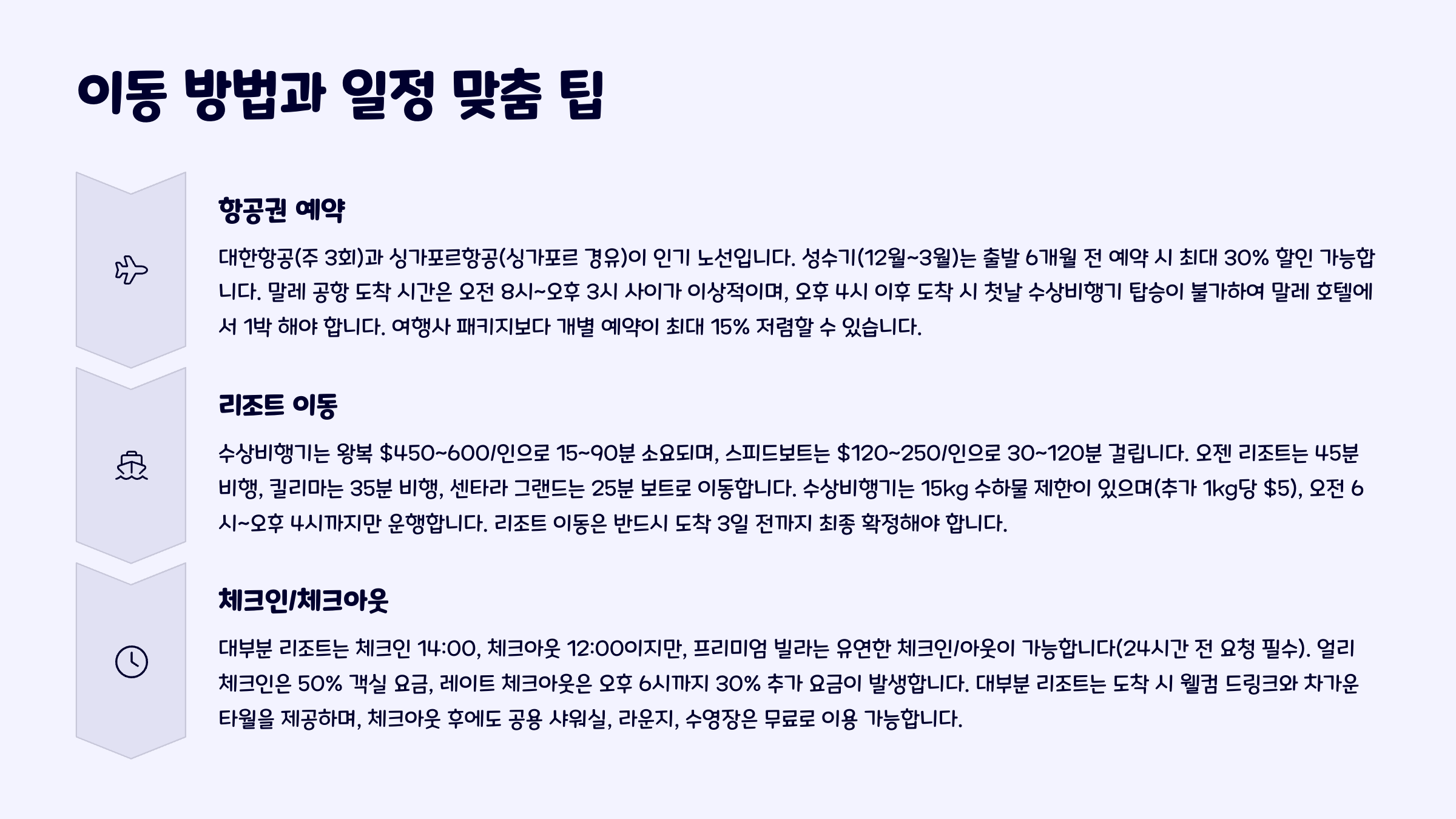 | 여행 팁 | 수상비행기 여부 확인 + 허니문 특전 사전 신청 |