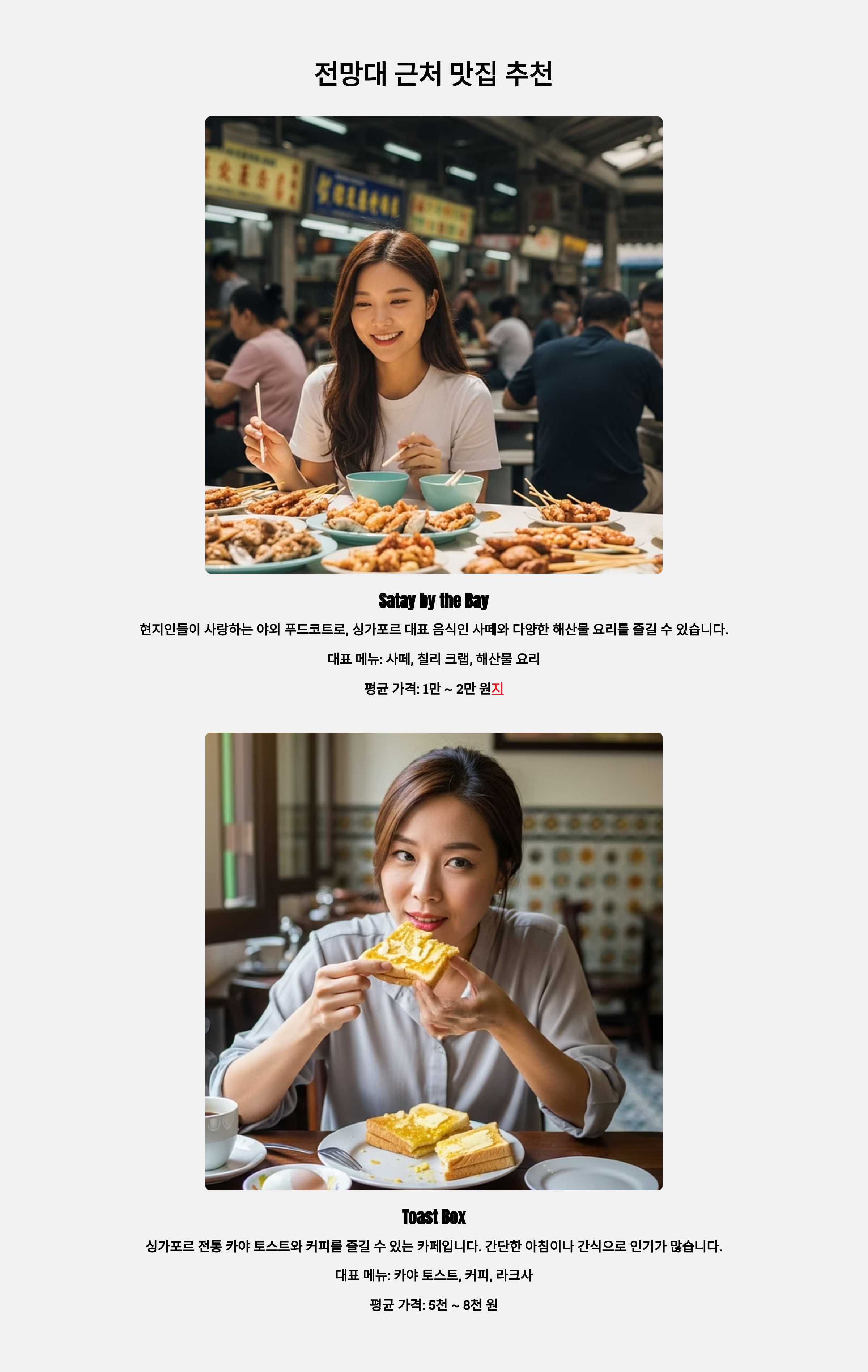 | Satay by the Bay | 사떼, 해산물 요리 | 1만 ~ 2만 원 | 지도보기 |
