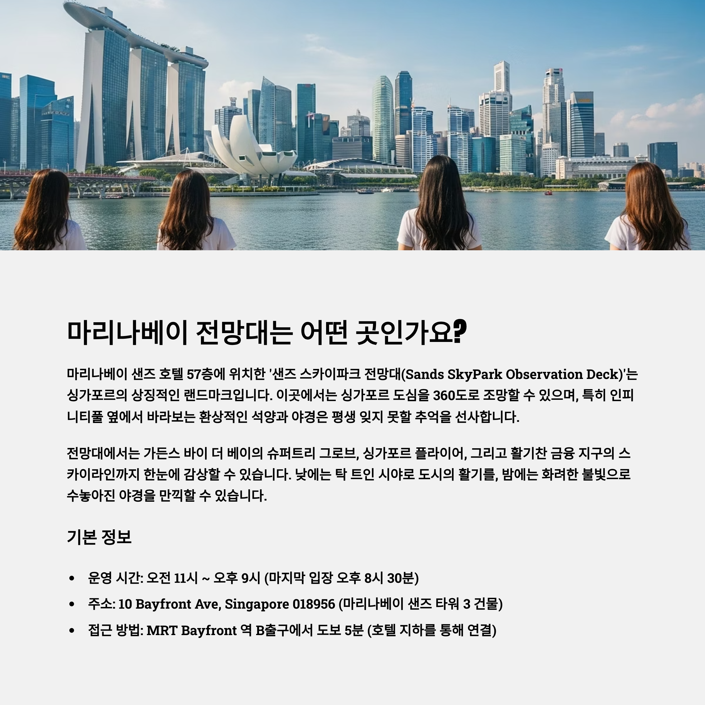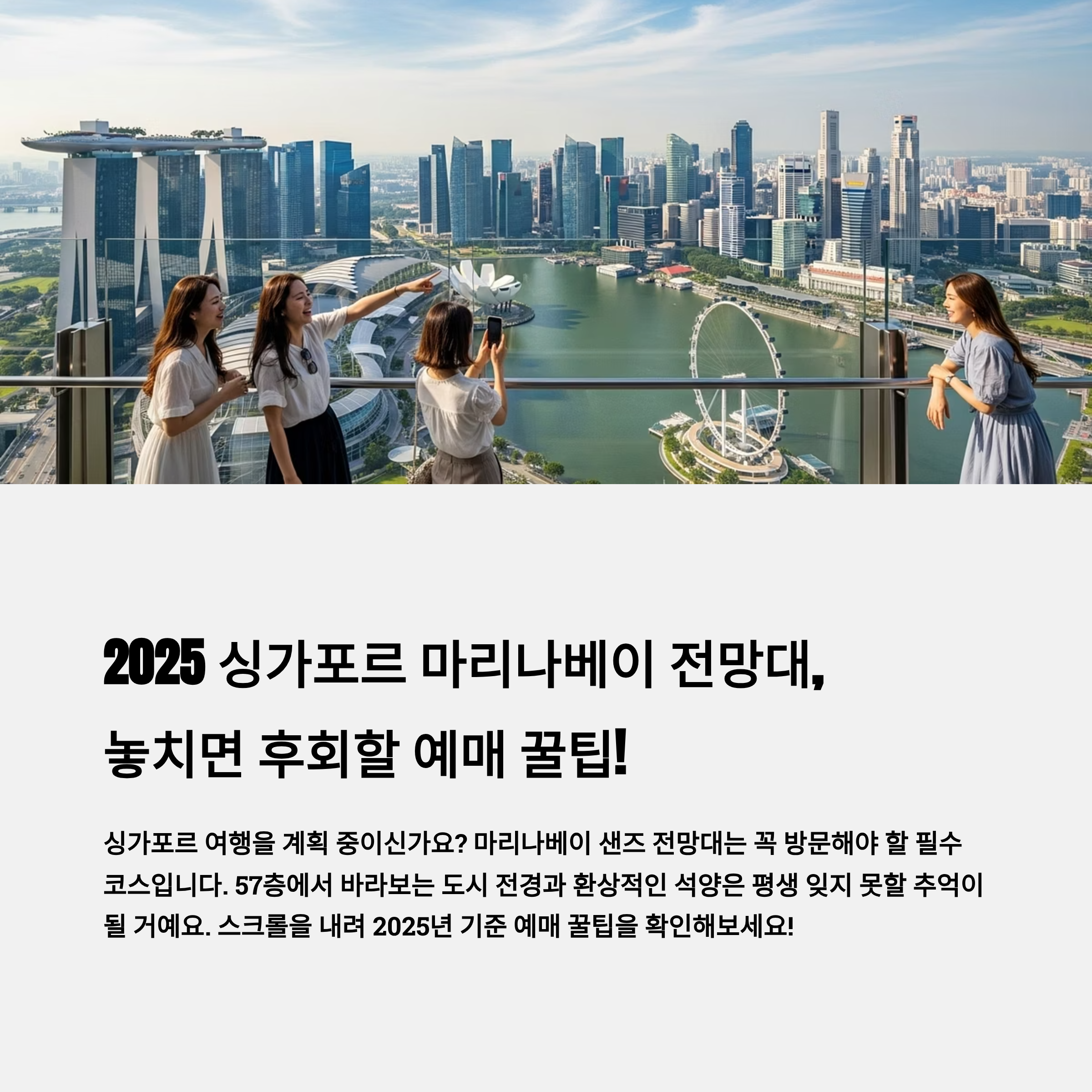 싱가포르 여행을 준비하시는 분들이라면 누구나 한 번쯤은 꿈꾸는 장소, 바로 마리나베이 샌즈 전망대죠.