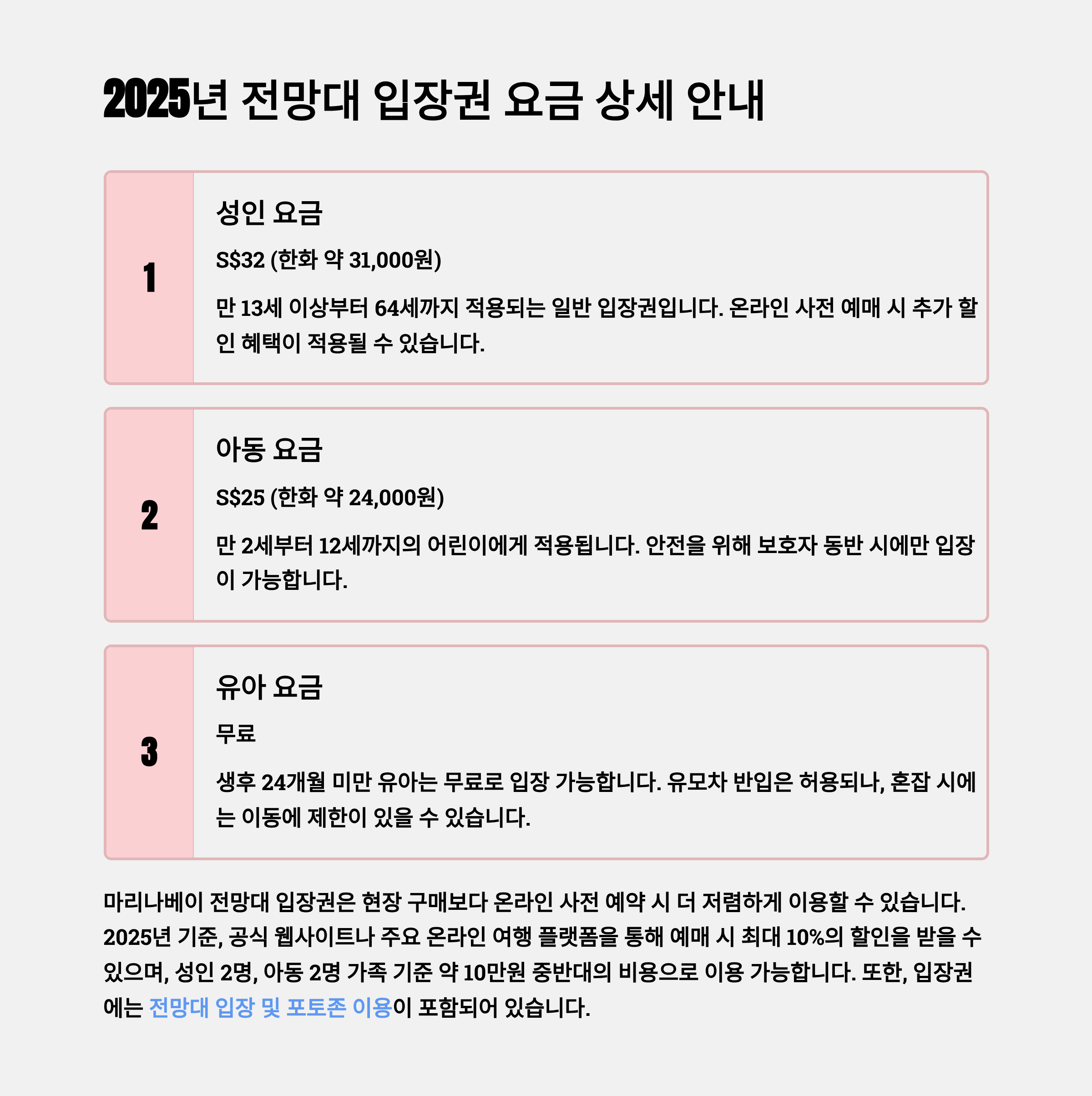 | 성인 | S$32 (약 3만 1천 원) | 만 13세 이상 |