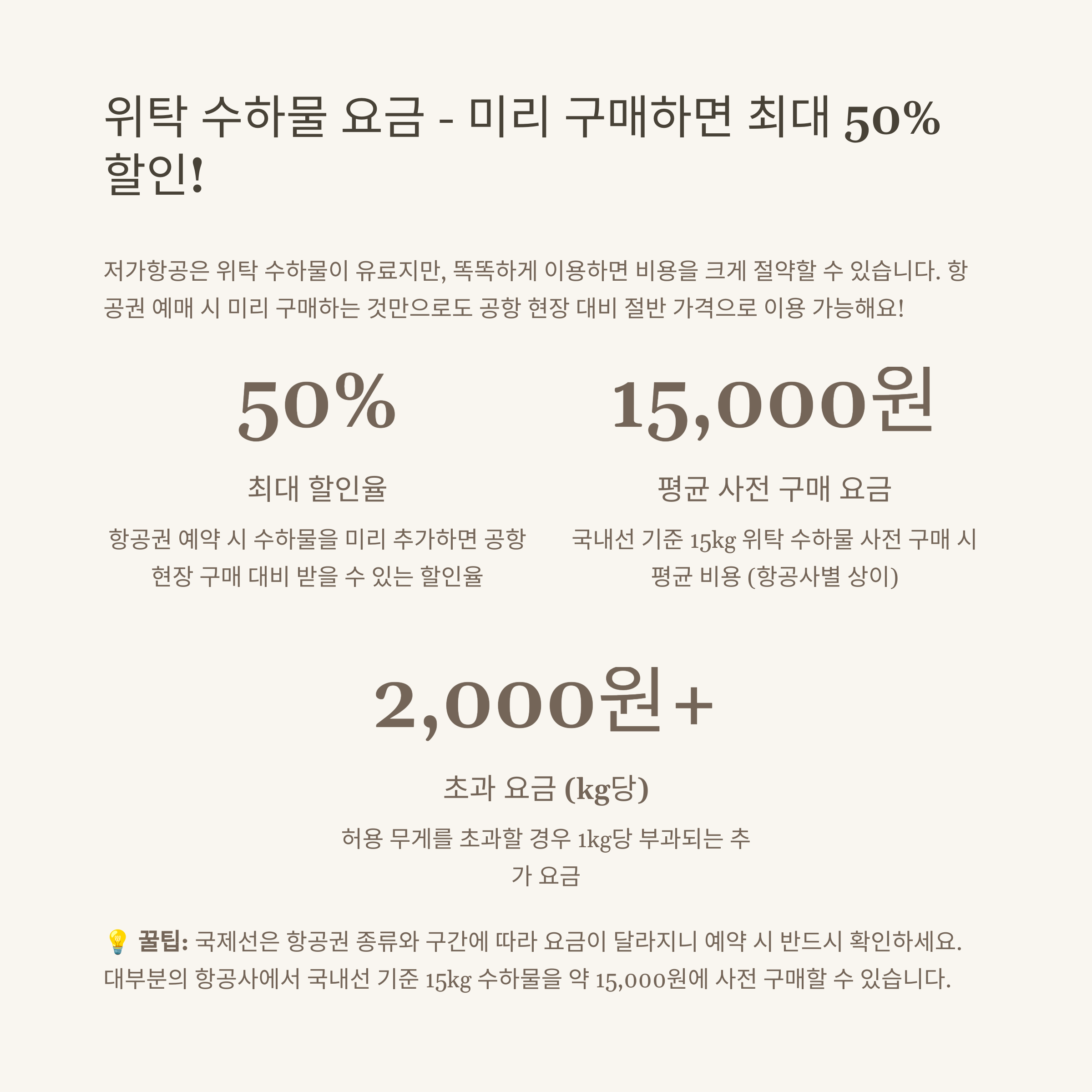 - 위탁 수하물은 미리 예매 시 50% 이상 저렴