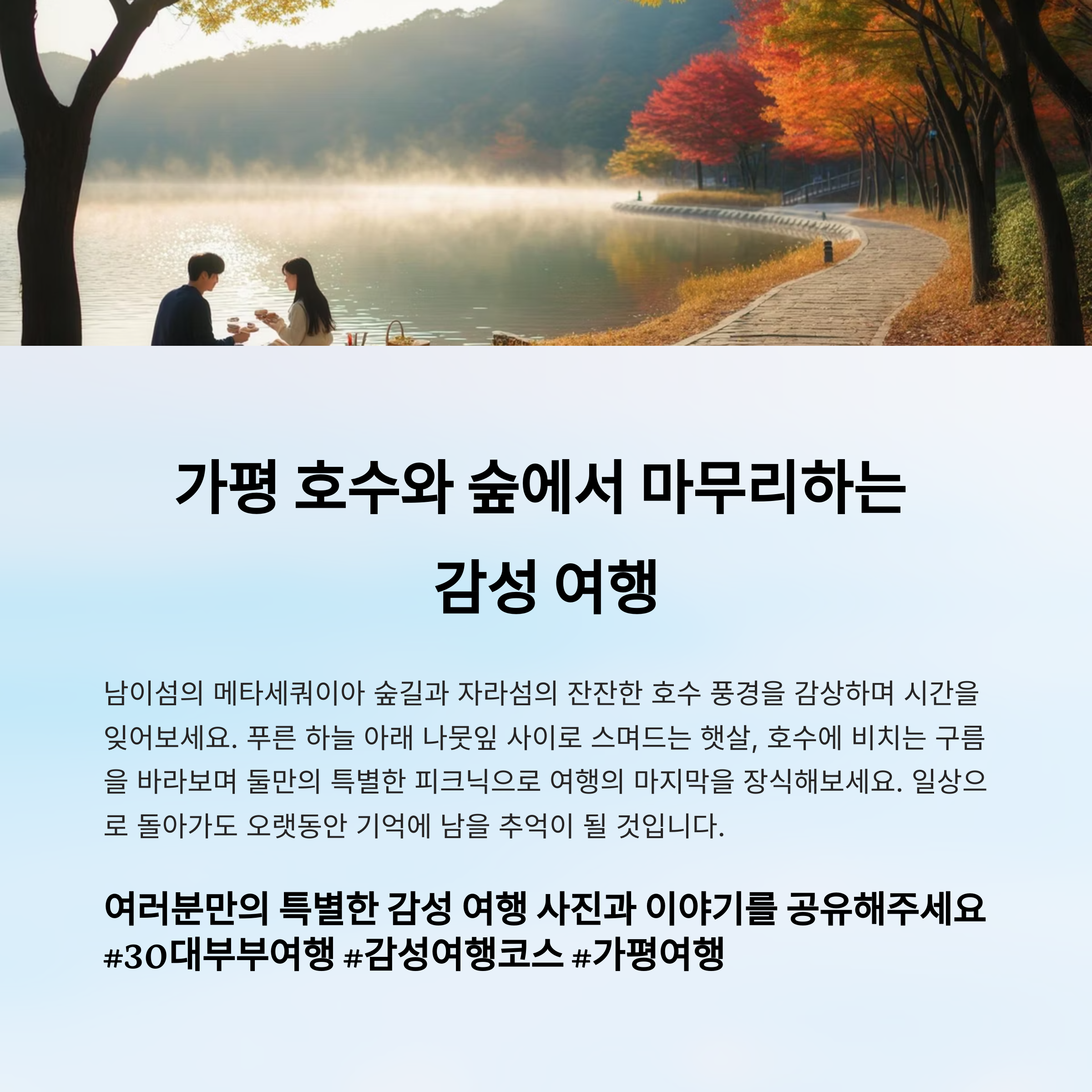 "가평은 호수와 숲길이 어우러진 힐링의 완성입니다."