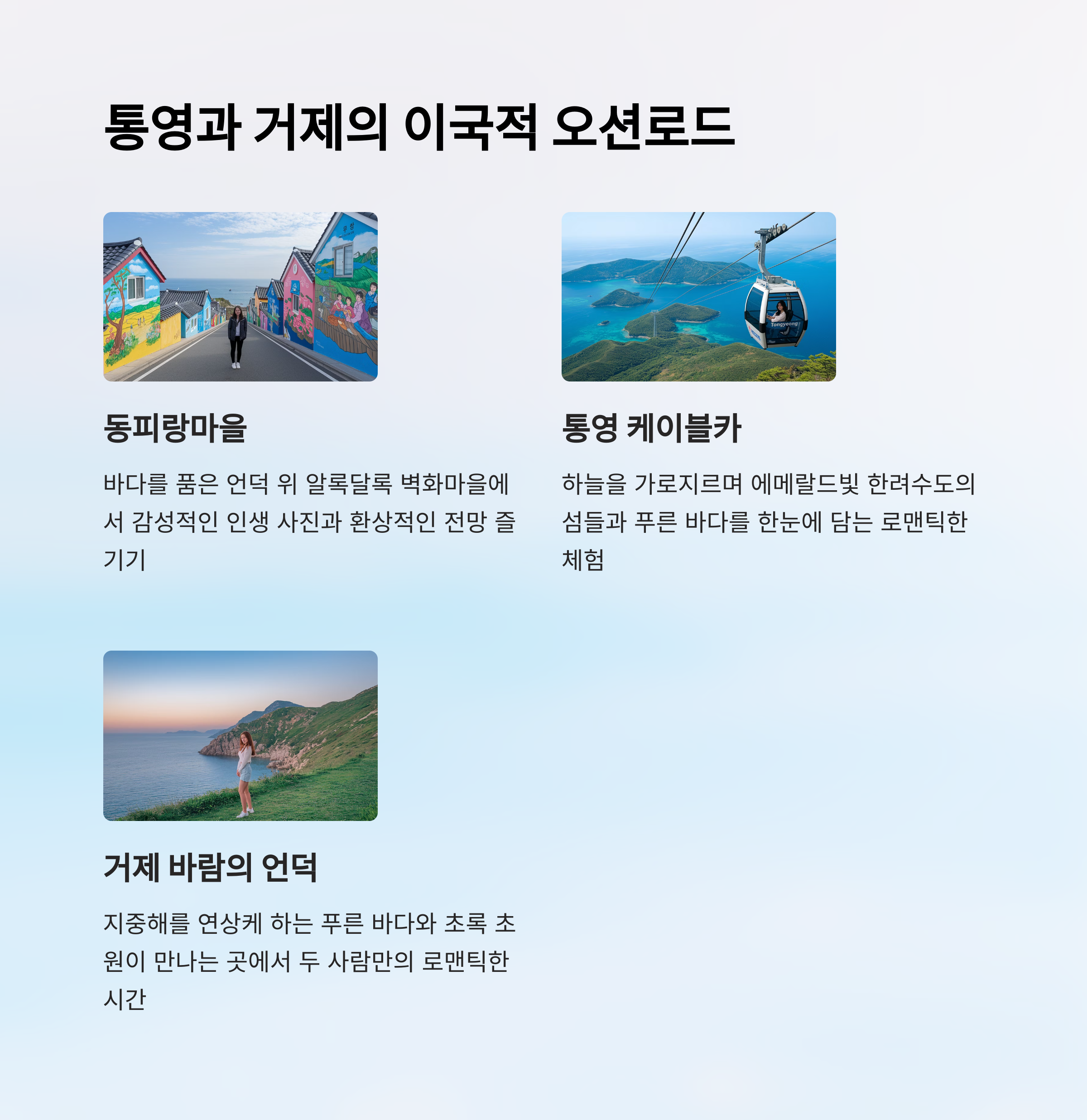 거제 바람의 언덕, 통영 동피랑 벽화마을, 그리고 아름다운 해상 케이블카까지.